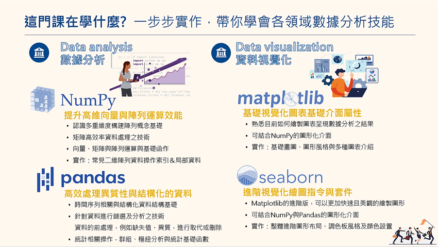 這門課帶你一步步實作,帶你學會各領域數據分析技能