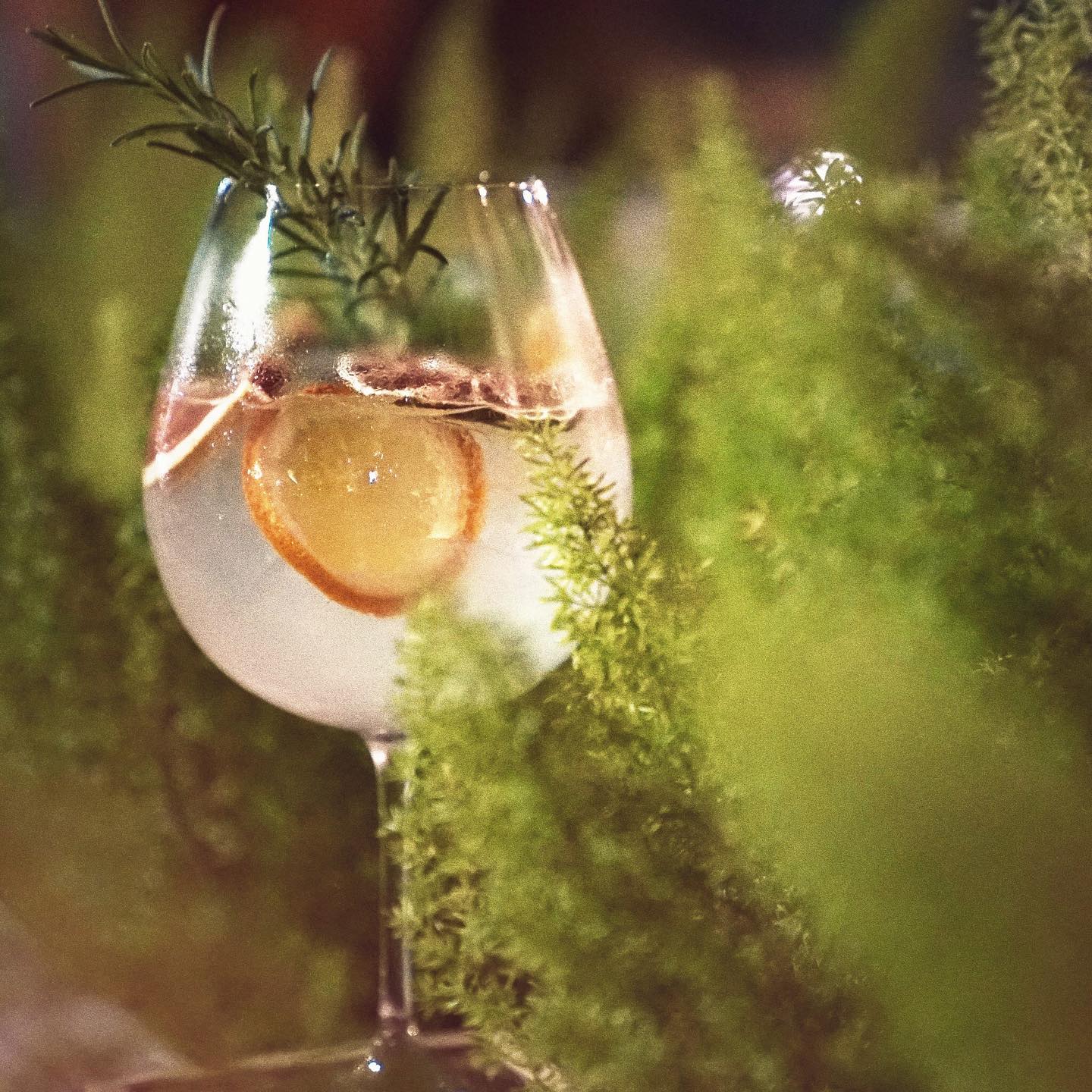 用寬口紅酒杯,取代一般的可林杯,並加入了當令的香草、水果,做成的一杯琴通尼,清爽而與眾不同。