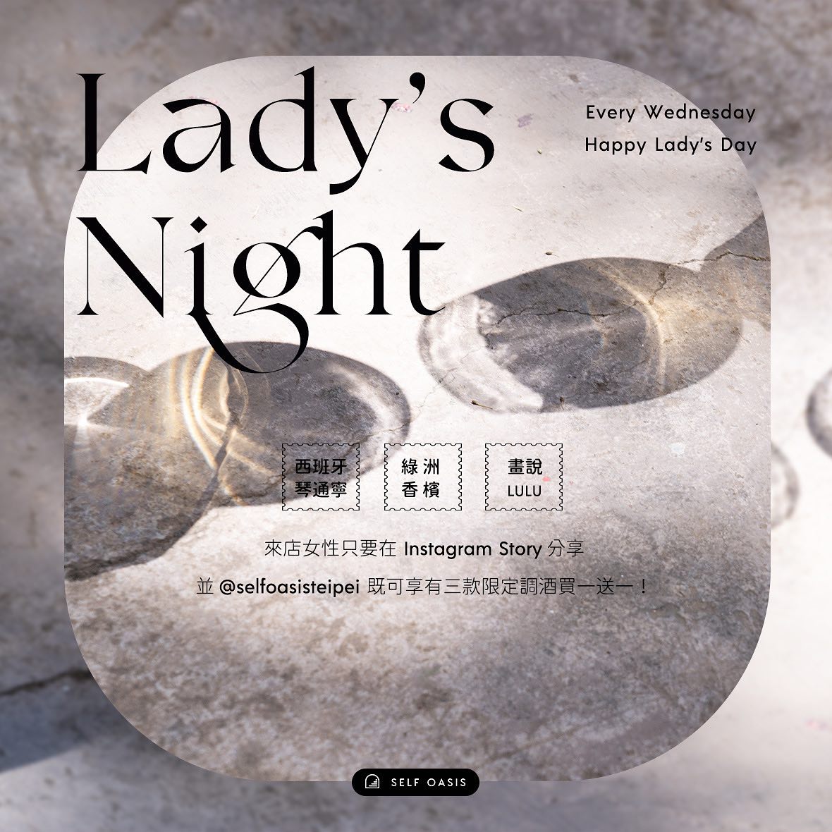 並 @selfoasisteipei 既可享有西班牙琴通寧、綠洲香檳、畫說 Lulu三款限定調酒買一送一 !