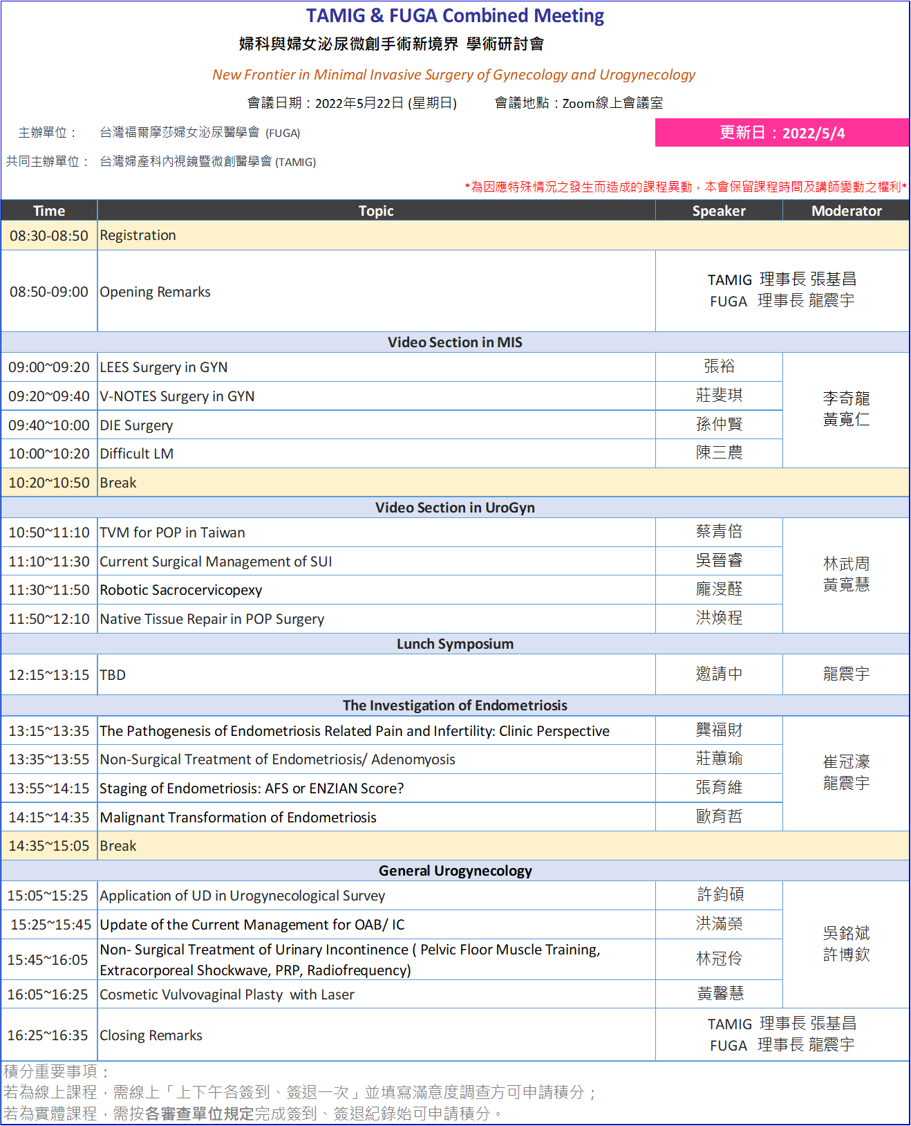 ·『台灣婦產科內視鏡暨微創醫學會』會員免費,須繳清常年會費