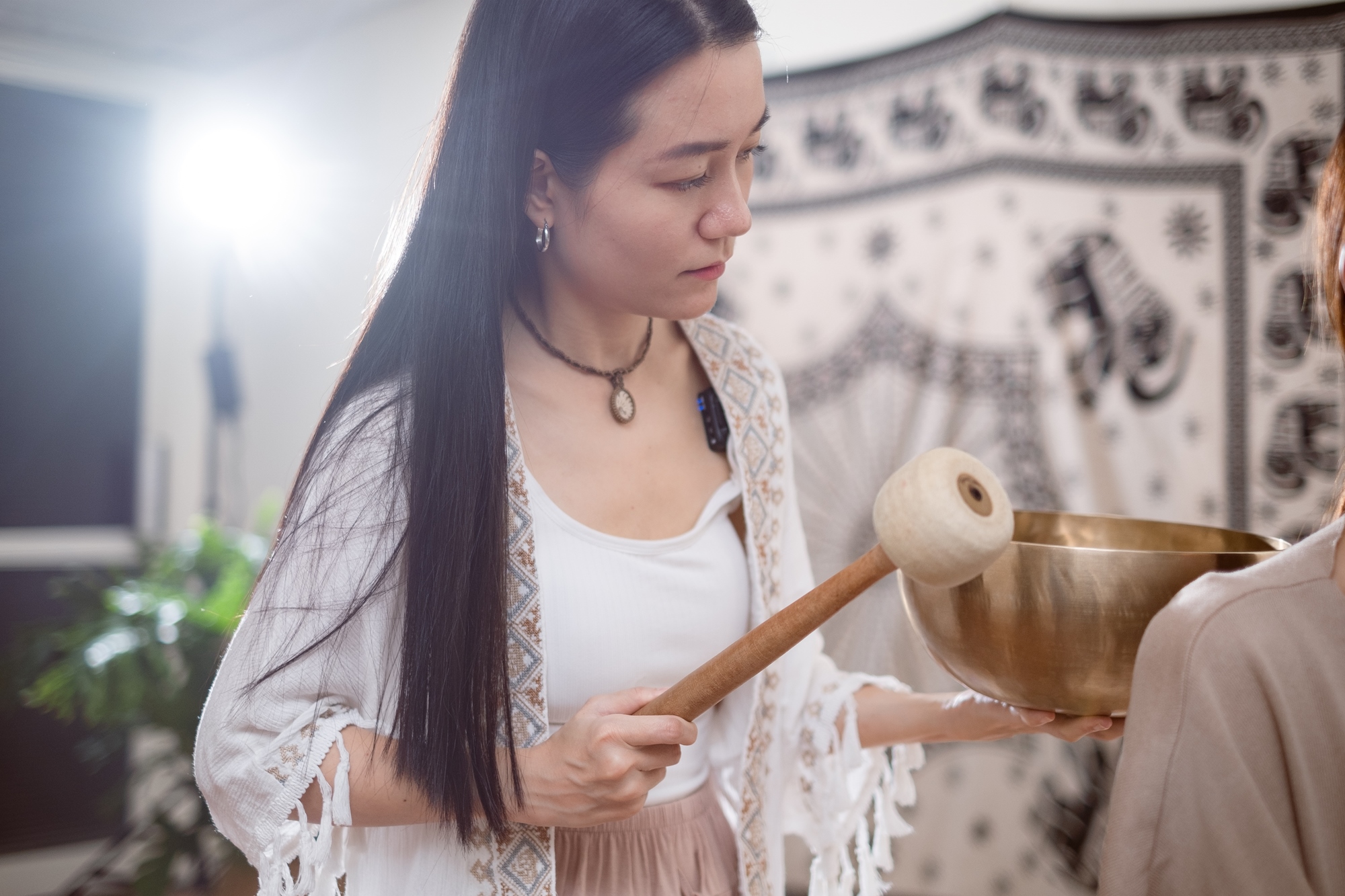 頌缽音療是溫和無侵入的療癒工具,因為人體70%是水份,可將缽音的共振傳達到細胞深處,協助清理淤塞的地方,並將失衡的部位調整回原本的位置。