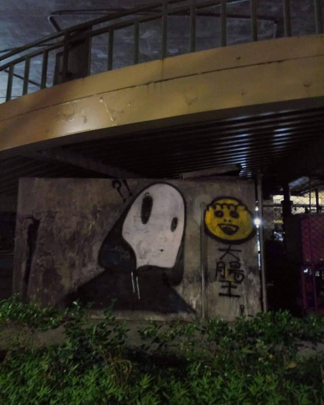 大腸王寶寶是經常出現在台灣街頭牆上的塗鴉,線條簡單、有著QQ瀏海的寶寶臉,說不上太好看,但這個寶寶,和「青少年純潔騙殺全國」一起被稱為台北四大街頭傳說之一,在ptt上的稱號是「神秘燒賣」,而本名則是「大腸王寶寶」。同時大腸王也參與各種大型展演,包含白晝之夜、台北燈節、Pow Wow Taiwan和Sea walls murals for the oceans等。 |