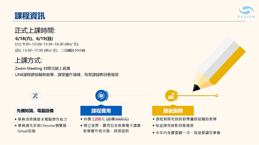◆課程諮詢與相關合作: service@fusionlab.tech