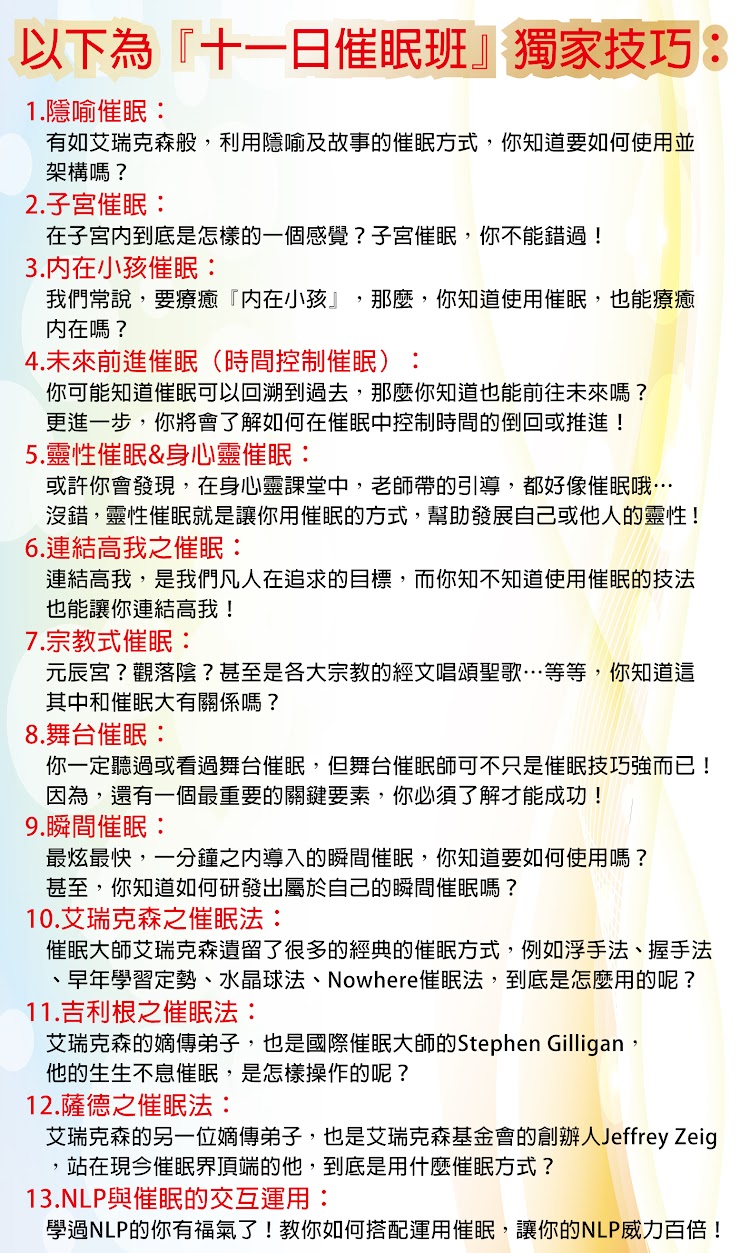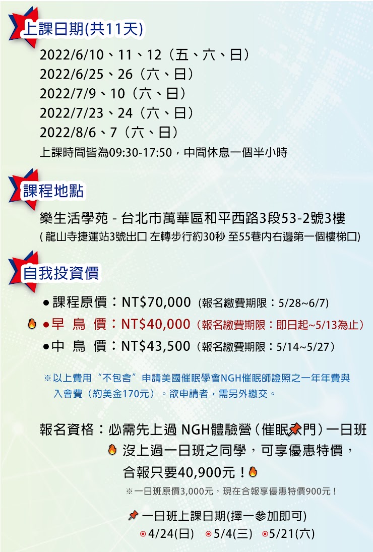 ※ 如未上過【NGH 一日體驗營(催眠入門)】