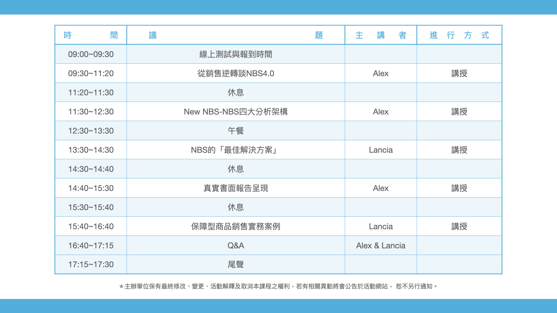 各種實務案例,保證讓你對課程印象深刻,搭配深入導師解析,讓你一天學會如何活用NBS相關知識!