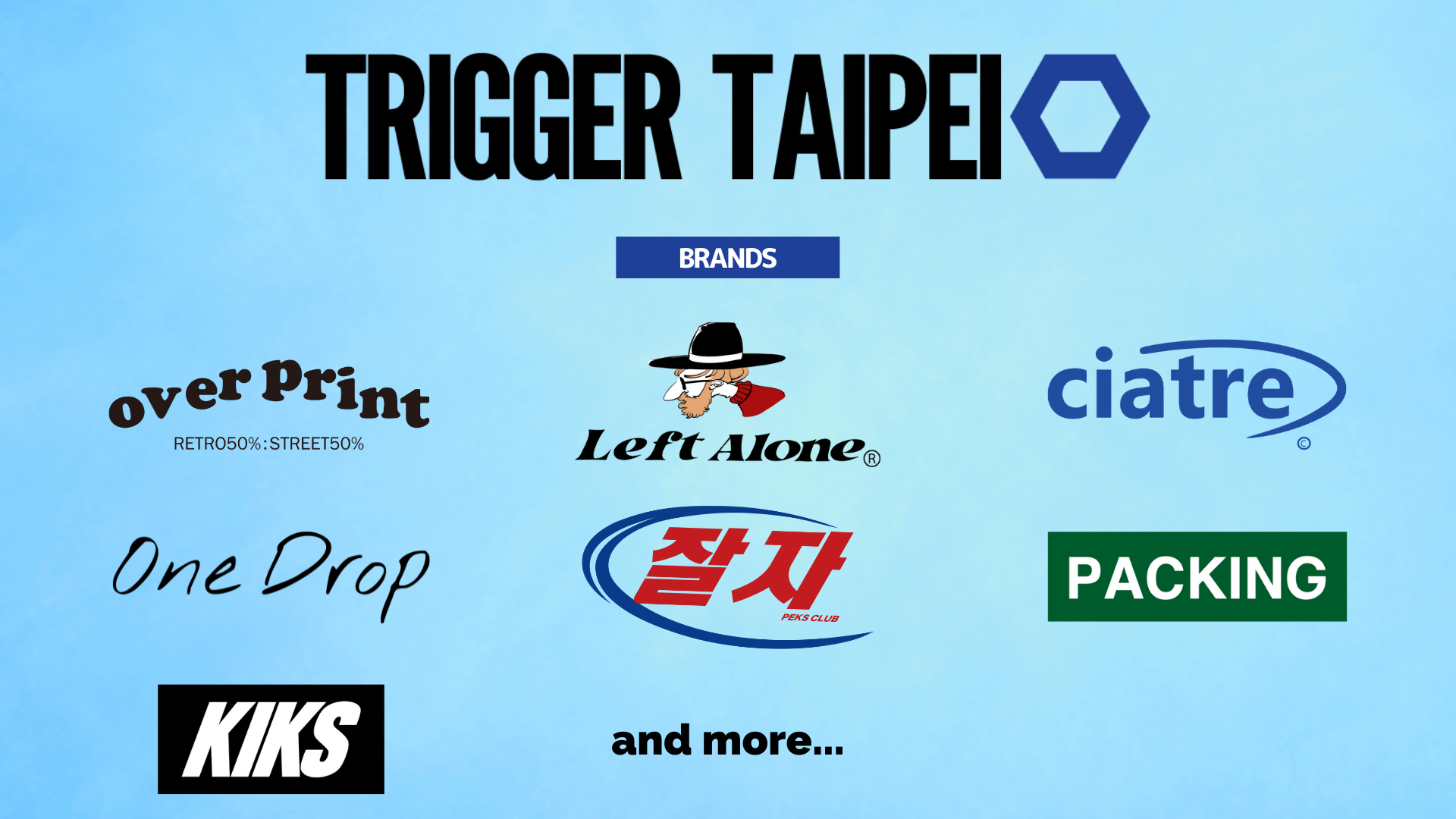 “準備好被我們射擊的覺悟了嗎?” TRIGGER TAIPEI 2022國內外時下流行品牌齊聚台北首次以品牌集合形式進行的快閃活動來自台・日各地服飾潮牌參戰!!!只有此次活動才有的「特別企劃」「特別空間」「限定商品」街頭潮流最前線就在這裡!這次是哪個品牌會射中你的心呢?你將成為此次活動的歷史見證者!參與此活動的品牌及活動情報持續更新中~敬請期待~【參與品牌】overprint @over__officialciatre @ciatre_officialleftalone @leftalone_officialpeksclub @peksclub_officialonedrop @1drop_officialPACKING @packing_2018KIKS @kiks_shop_official @kiks_twand more...【快閃地點】華山1914文化創意產業園區 東3A館(台北市中正區八德路一段1號)【活動期間】2022年5月28日(六)-5月30日(一)10:00-18:00(免費入場)主辦方:PALFILLER @palfiller2020※因應防疫政策,活動現場將限制入場人數,請依照現場工作人員指示排隊入場。※5月28.29日 每種商品不同顏色每人限購一件※支付方式僅提供現金支付與信用卡付款。※現場購買商品恕不供退換貨。敬請見諒。