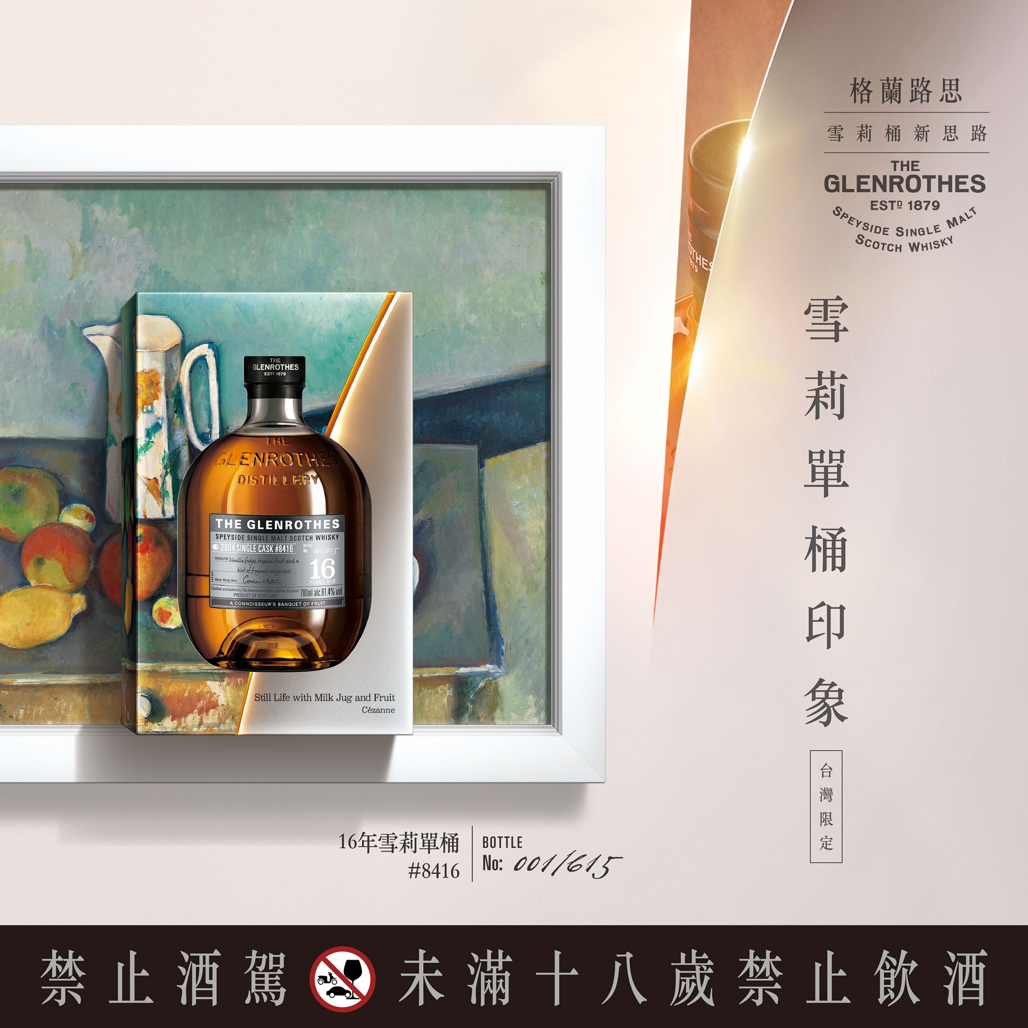 以風格介於印象派與立體主義的大師塞尚的作品「牛奶罐和水果的靜物」詮釋,以2004年蒸餾的純淨新酒,在美國初次雪莉桶陳年,格蘭路思16年厚實的原酒,就像畫作中略為低調的背景,讓香草奶油風味、熱帶水果奔放果香與迷人的柑橘調性,如同畫作中的牛奶罐與水果,在背景的襯托下動中有靜鮮豔迷人,是威士忌愛好者最豐盛的品味饗宴。