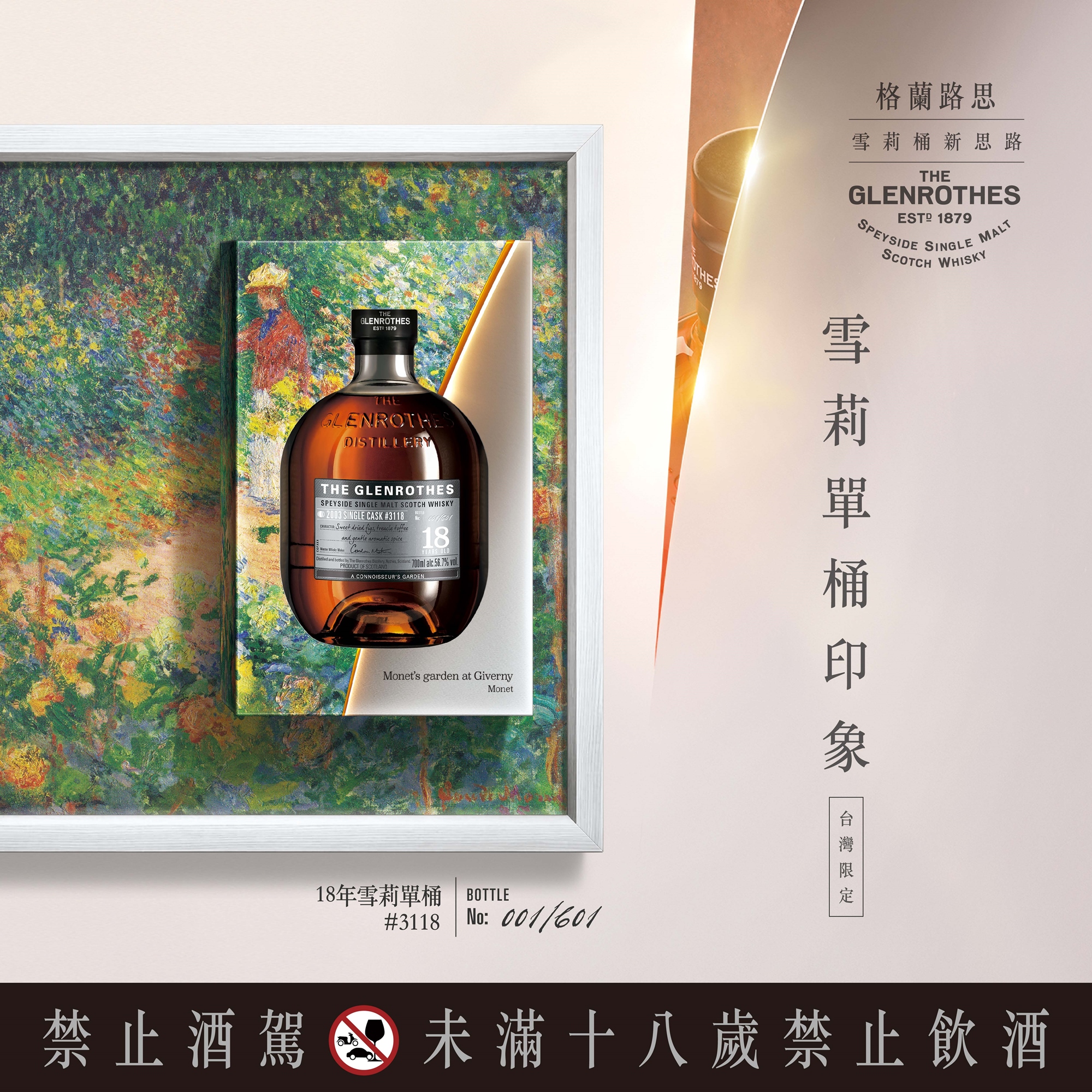格蘭路思今年特別推出「雪莉單桶印象」系列三款單桶原酒,100%雪莉桶熟成,讓15、16、18年單桶原酒的香氣躍然眼前,台灣限量版更選用印象派大師作品為包裝,風味品味兼具,實為新一代威士忌珍藏首選。