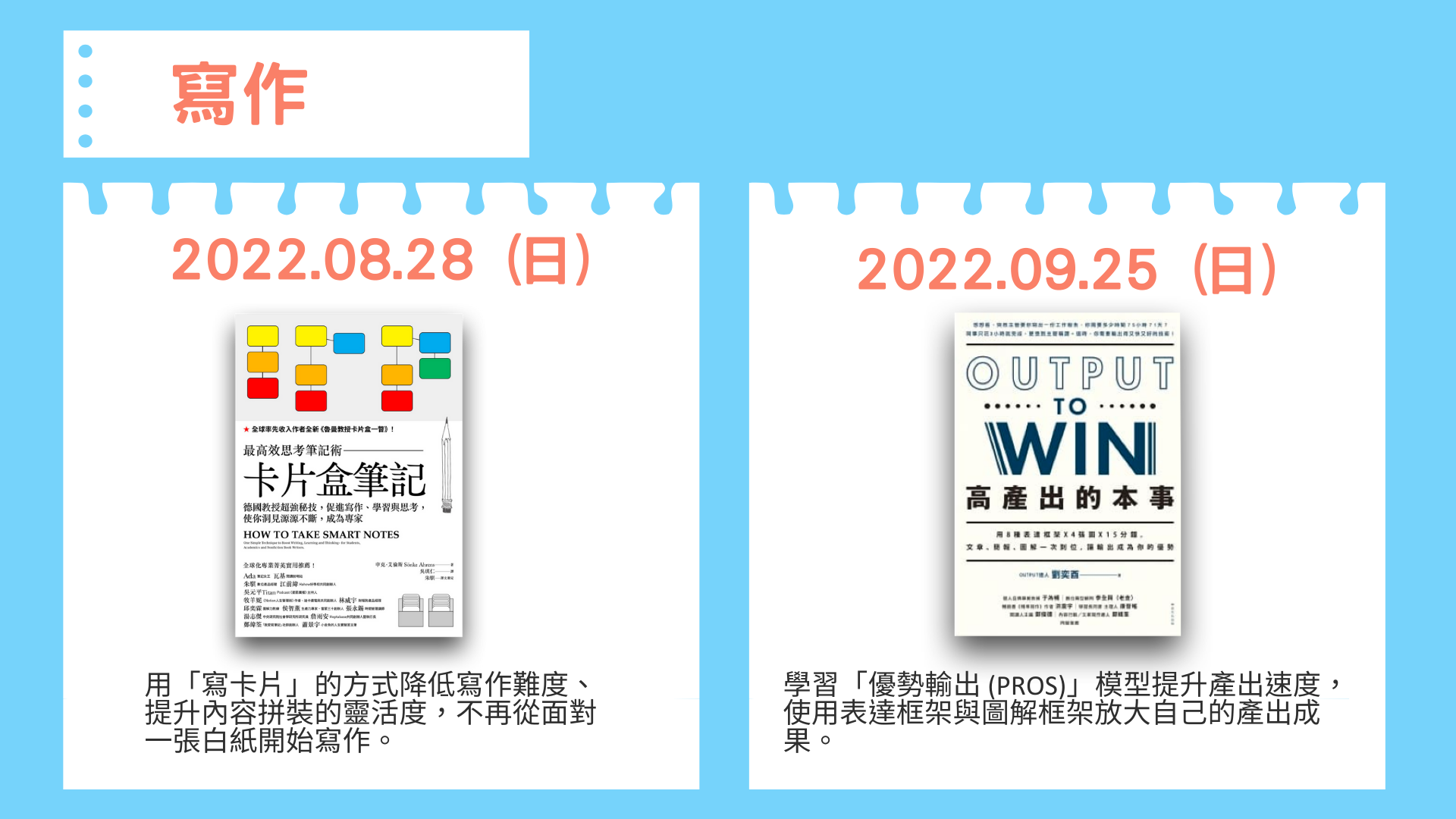 (讀書會時間均為上方標示日期的 20:00 ~ 22:00)