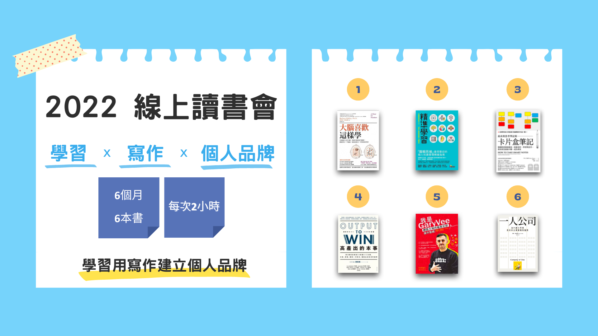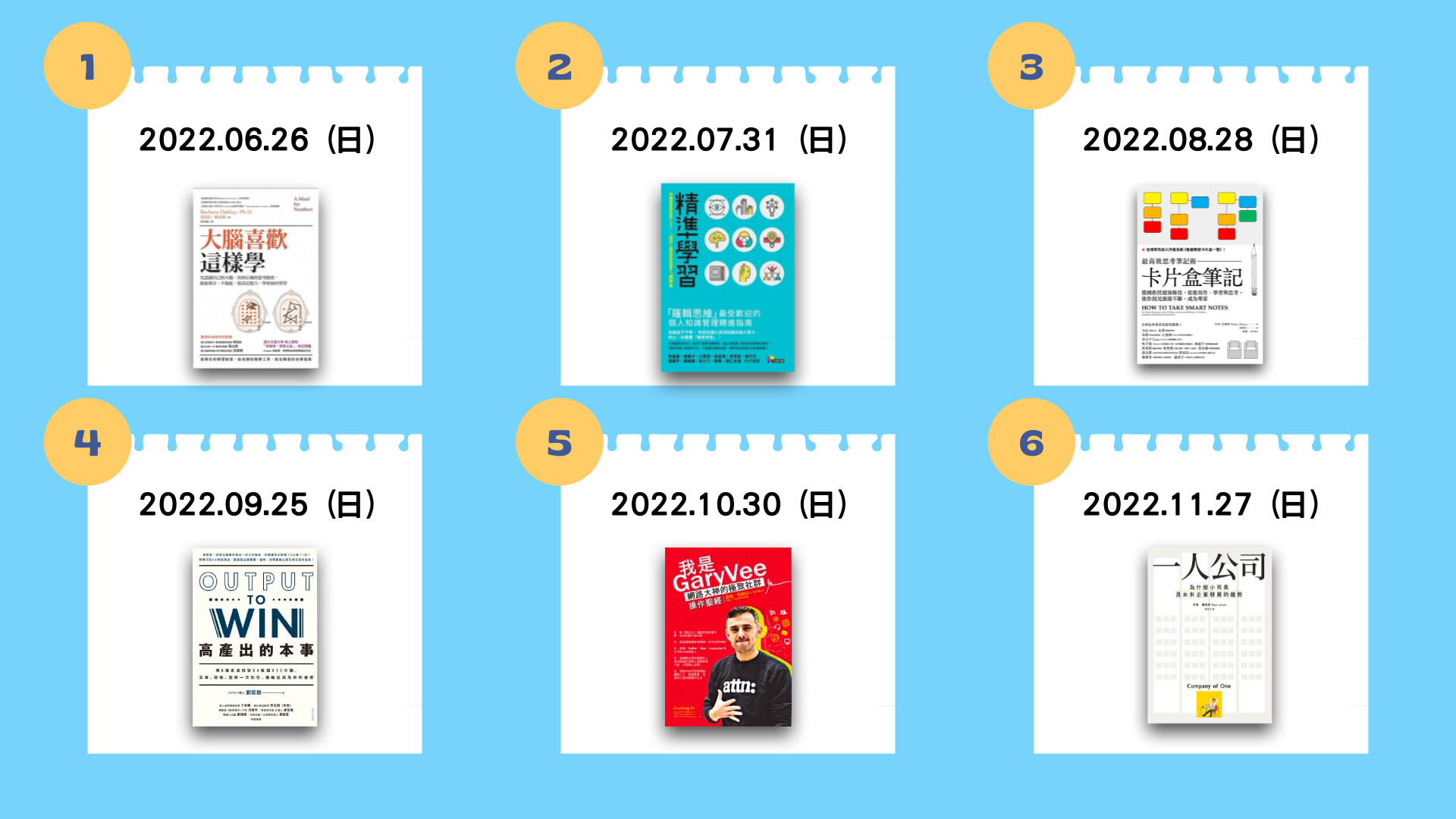 我將在 6 月 ~ 11 月,每個月舉辦一場線上讀書會跟大家分享好書,總共舉辦 6 場。