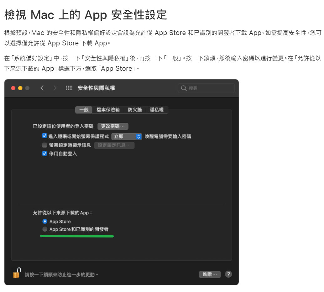 - Window與Mac系統皆須授權信任主程式才能開啟(Mac系統可能需要自行更改安全性設定到下圖綠線的選項)