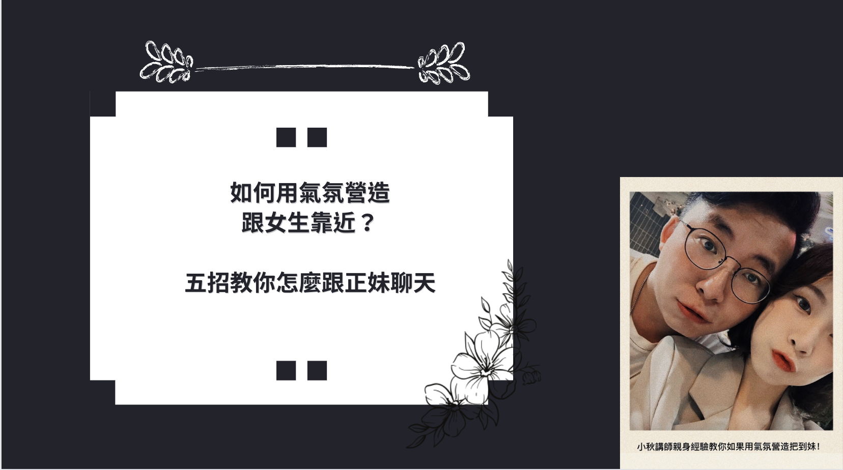 本課程專為男性開設,針對「與女性相處的正確氣氛營造法則」