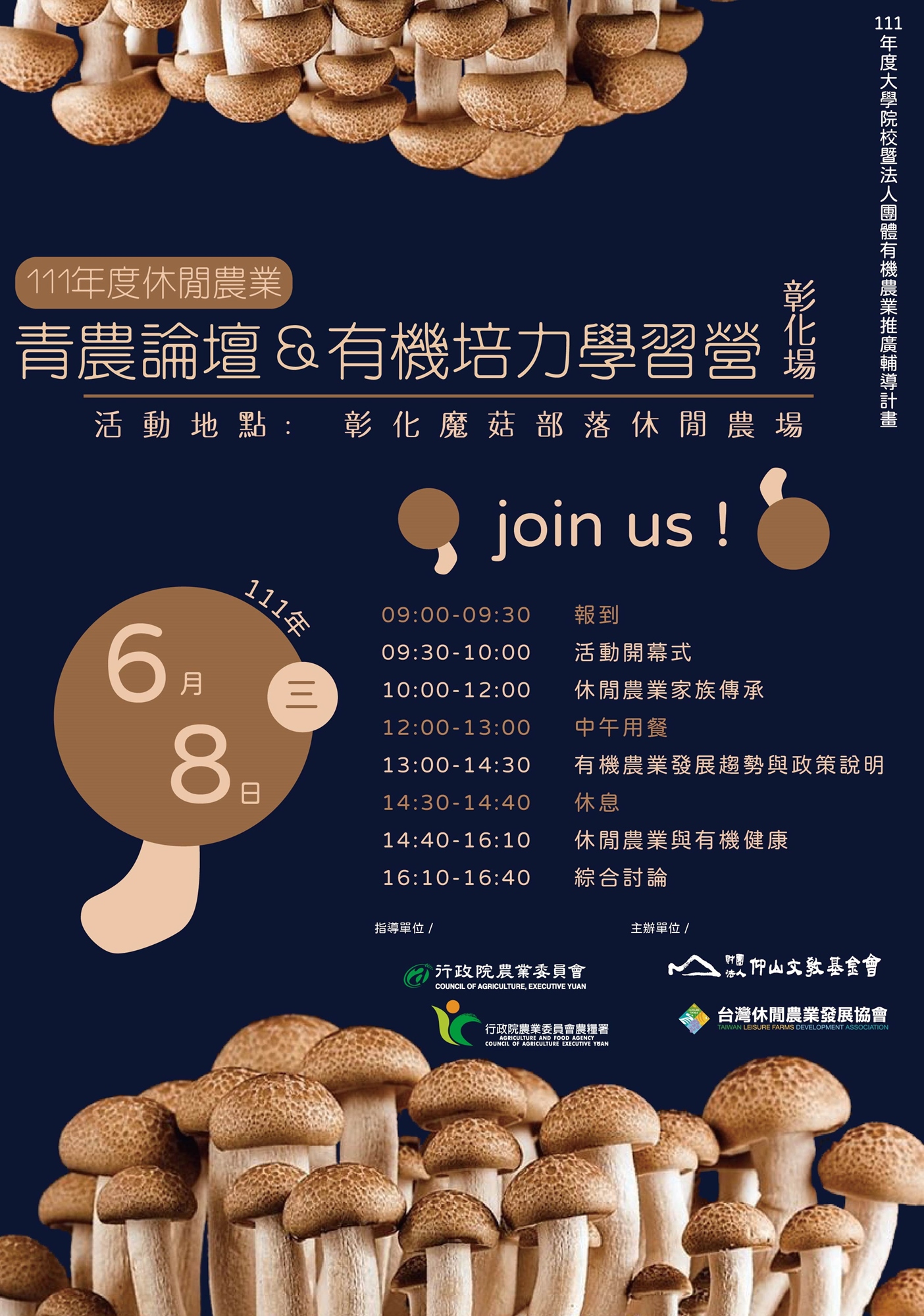 - 主辦單位:財團法人仰山文教基金會、台休閒農業發展協會。