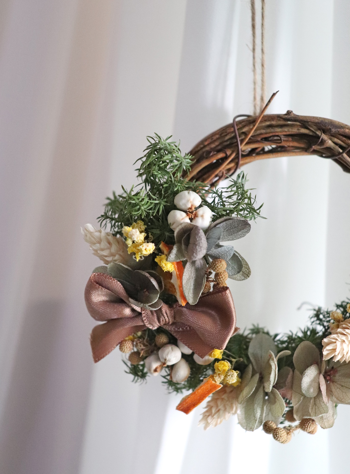 直徑約 9-12 公分(約一個手掌大的小型花圈)