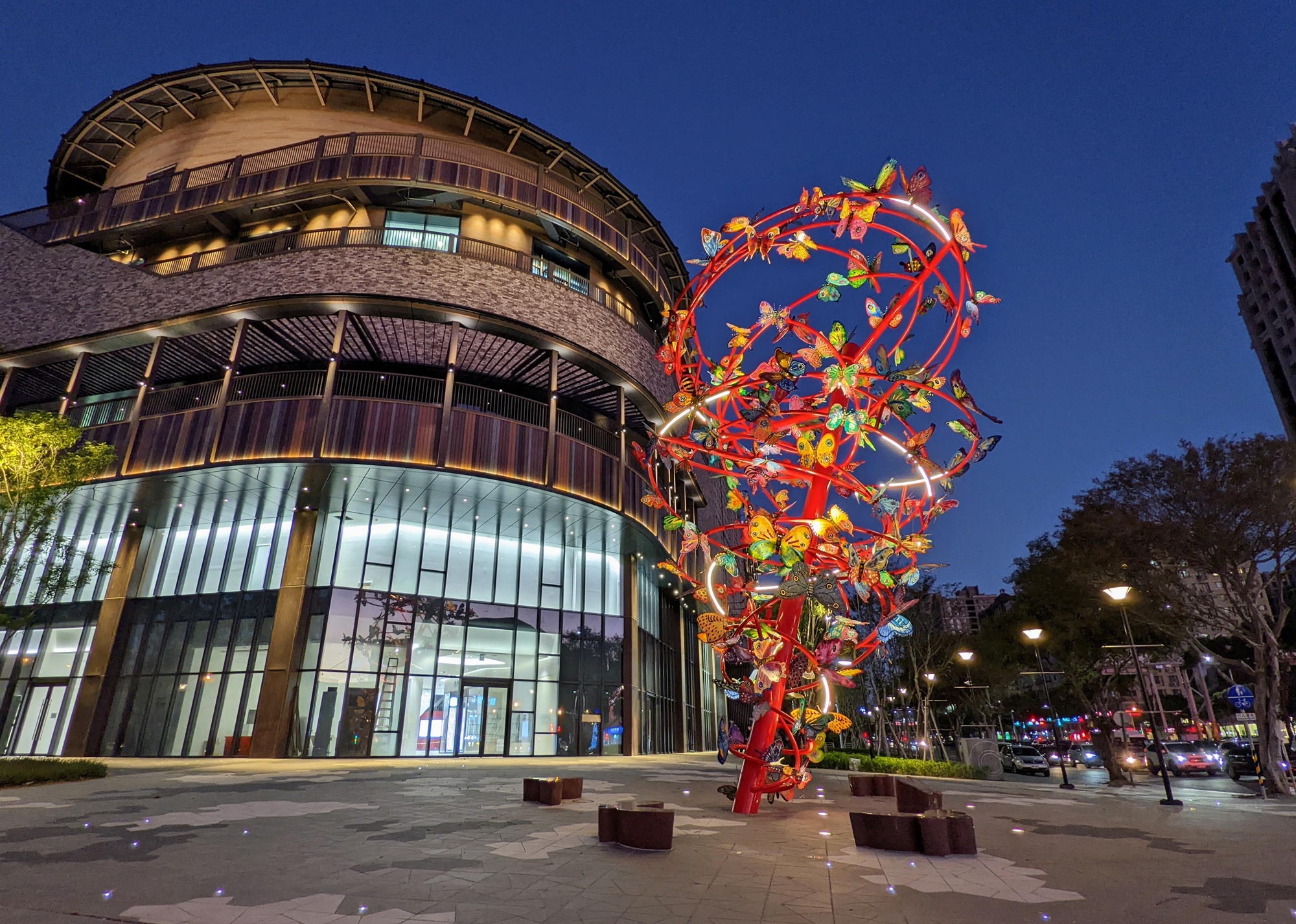 臺灣藝術家陳宏誠作品《風采桐漾 富竹滿溢》,位於一樓戶外廣場
