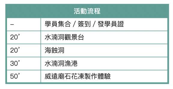 活動後半場將到威遠廟進行石花凍製作體驗活動,透過手作認識石花菜與水湳洞的文化連結,不僅美味還透心涼!