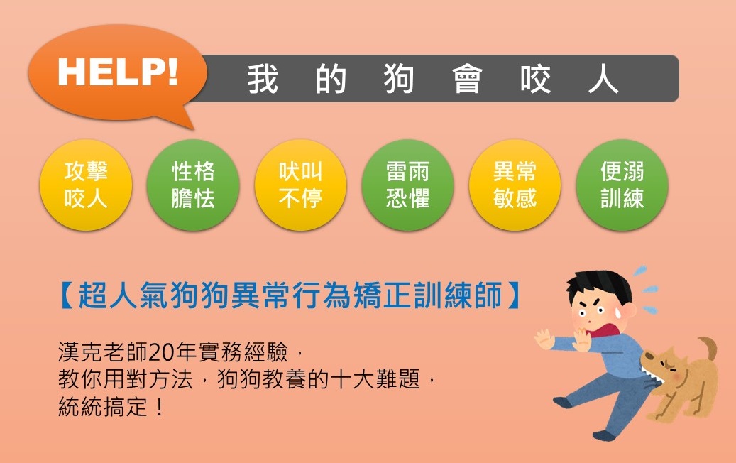 ~報名本課程加贈指定教科書:別亂教你的狗 HELP!我的狗會咬人(漢克老師著,市價$380元)~