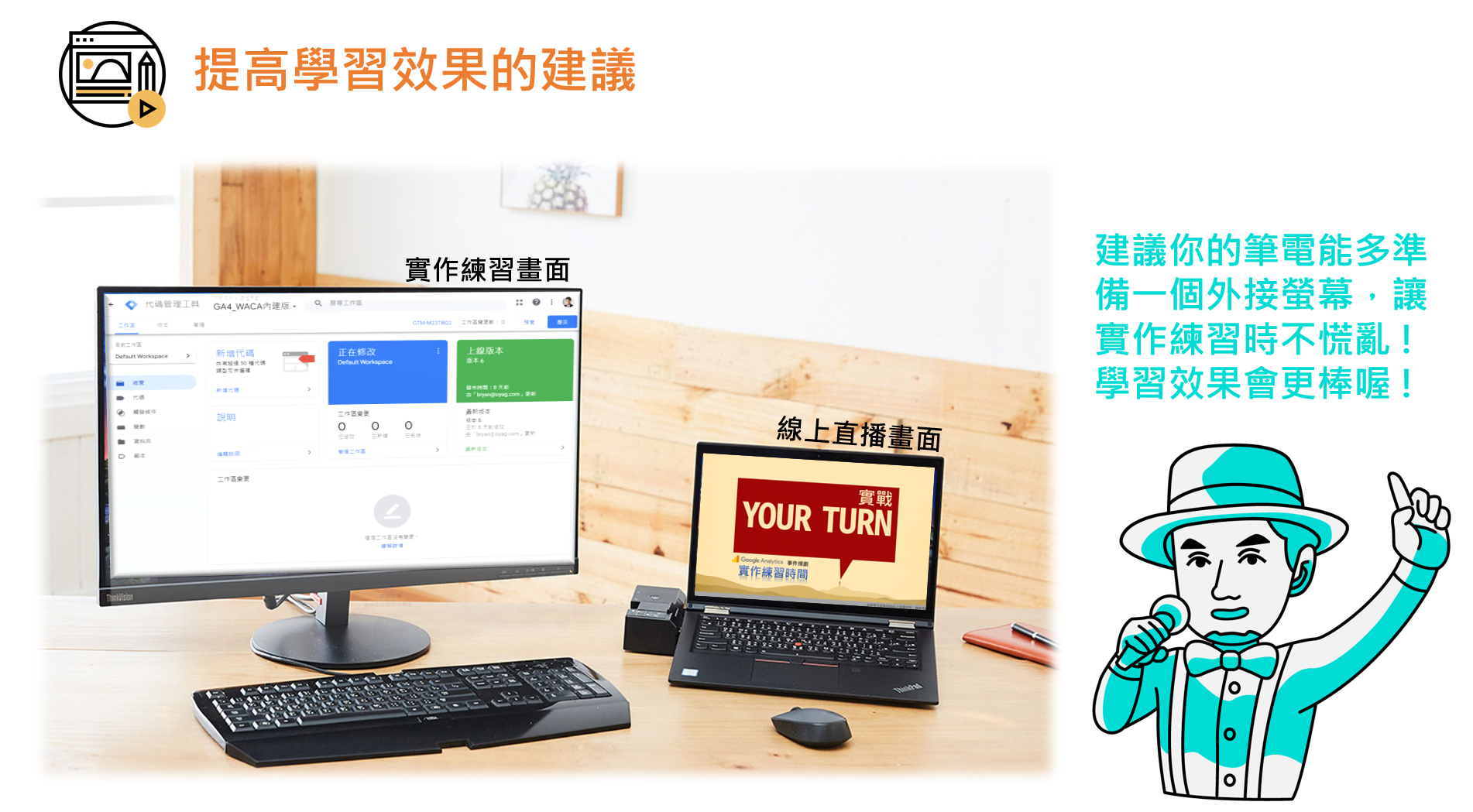 雖然新版GA4對於網頁程式理解能力非常吃重,對於不懂技術的行銷工作者來說GA4的事件規劃工作是不能夠全部交給技術人員去進行的,由於分析洞察工作是由行銷人員自行解讀,在事件一開始規劃設計階段就必須考慮到能符合未來商業目標的各項需要因素,實戰課程中也針對非技術的行銷事件規劃準備了實務練習,幫助你未來面對這部分的困境能有更佳的解決方式。
