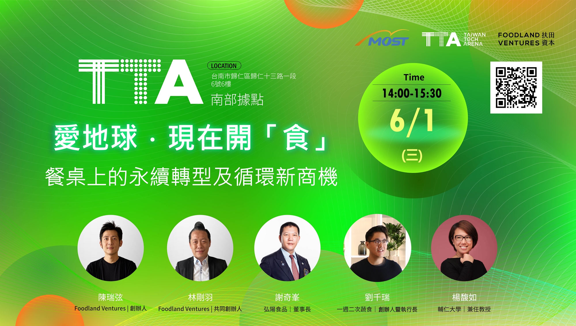 TTA與Foodland Ventures特邀臺灣最大植物肉製造商弘陽食品謝奇峯董事長、台北最潮風格蔬食 - 「小小樹食」負責人暨執行長劉千瑞、台義飲食文化專家及作家楊馥如教授,帶您了解永續趨勢及循環新商機!