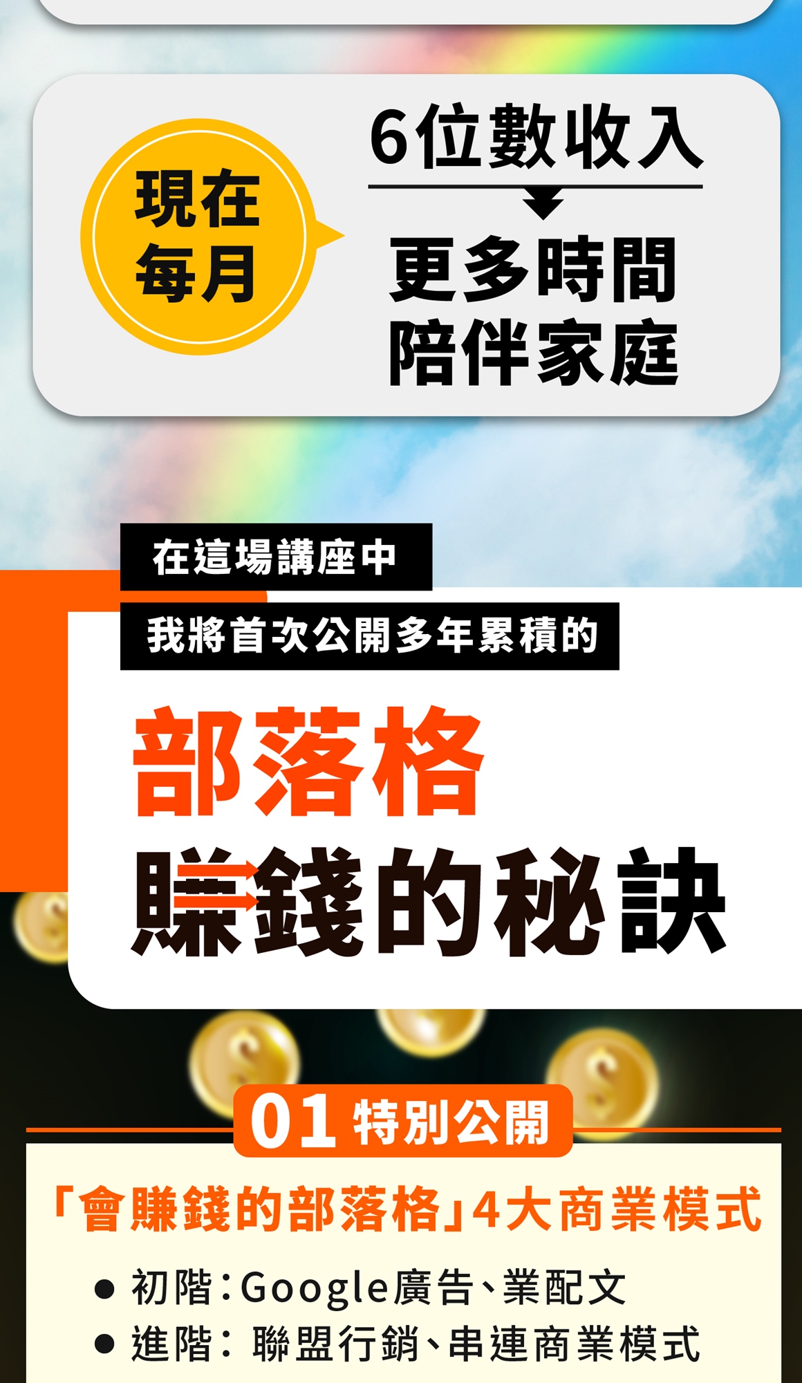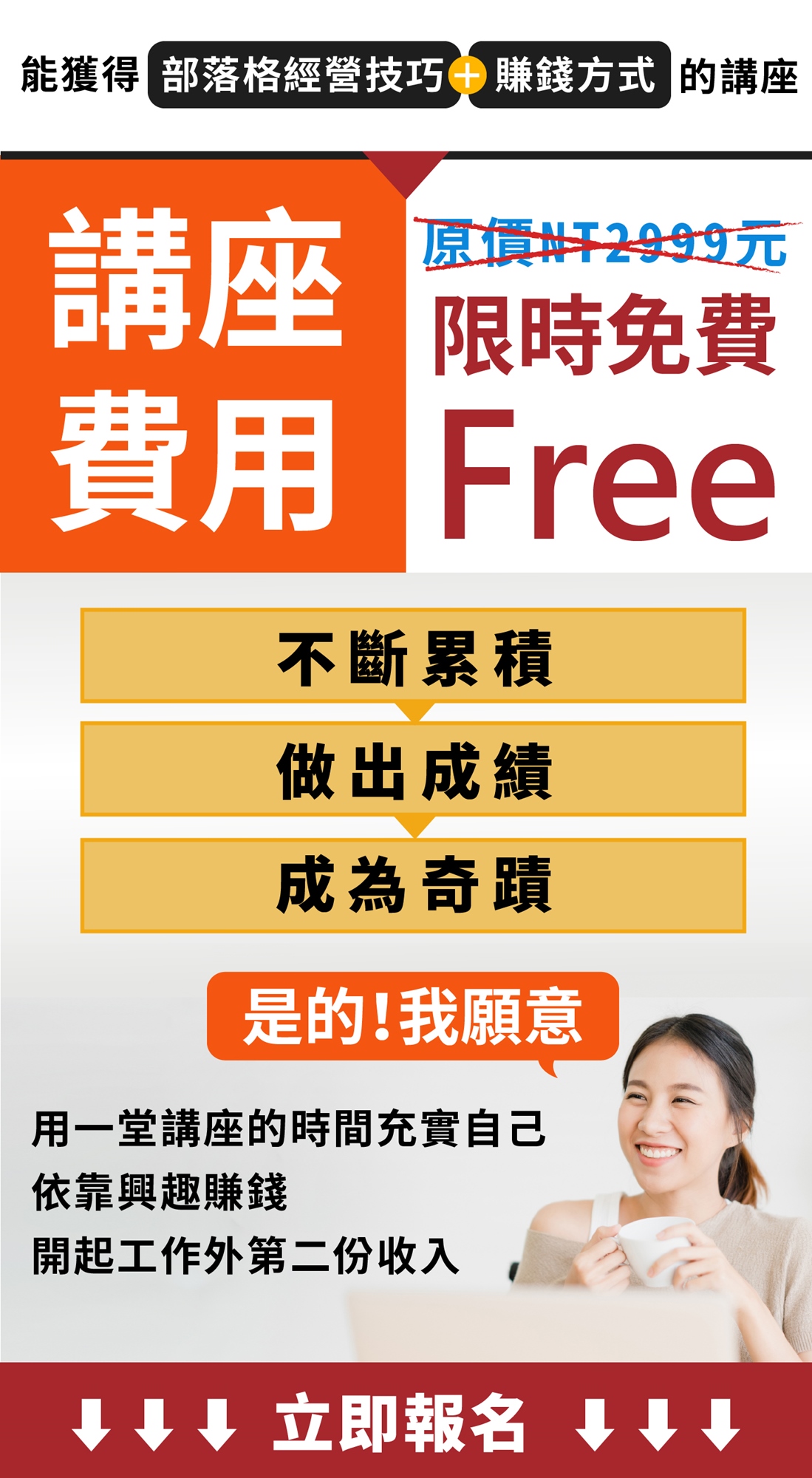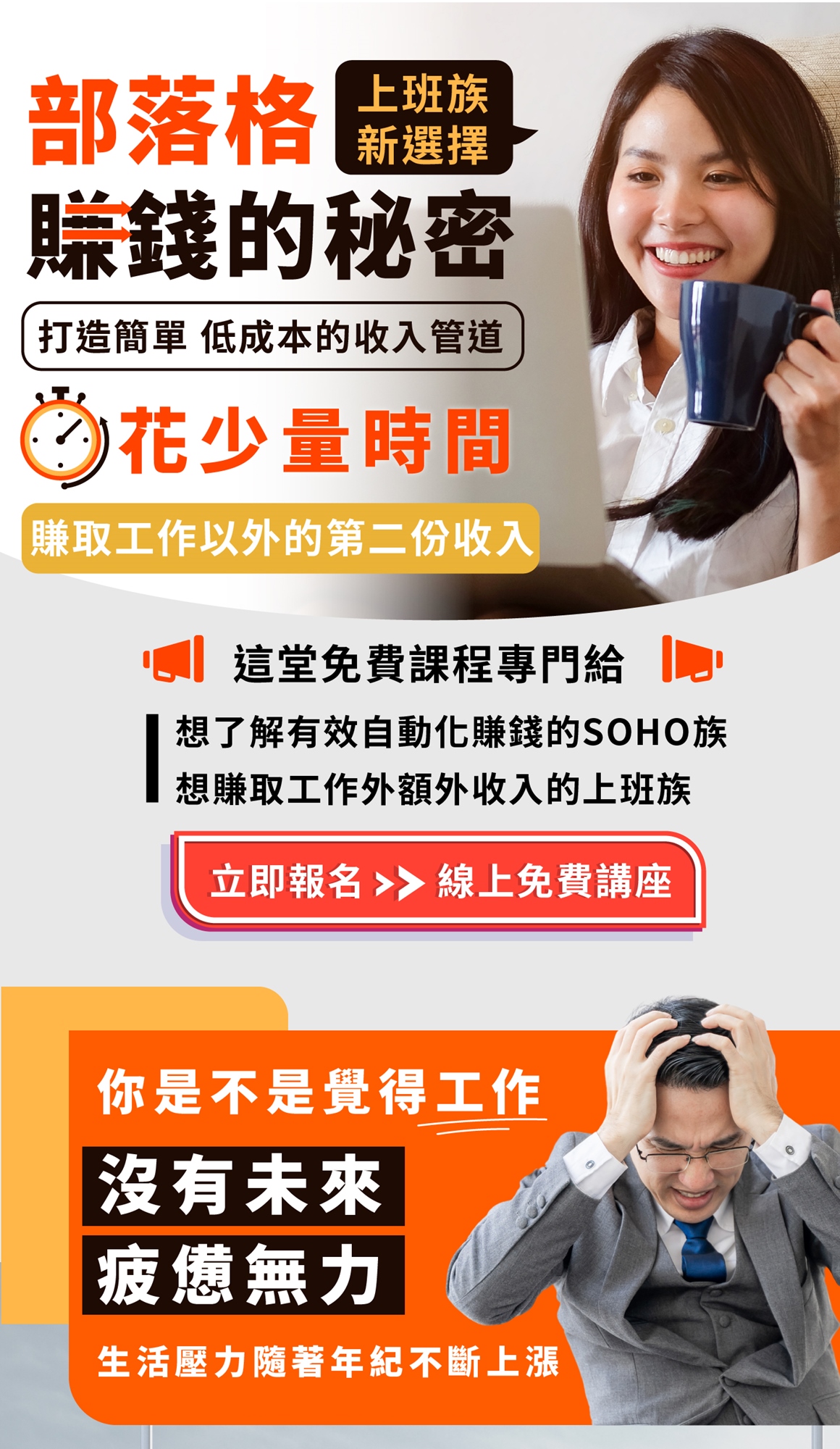 開啟部落格賺錢大門!用一次的時間,創造一輩子收入→【斜槓人生X被動收入X兼職外快】自媒體賺錢模式大揭密▼