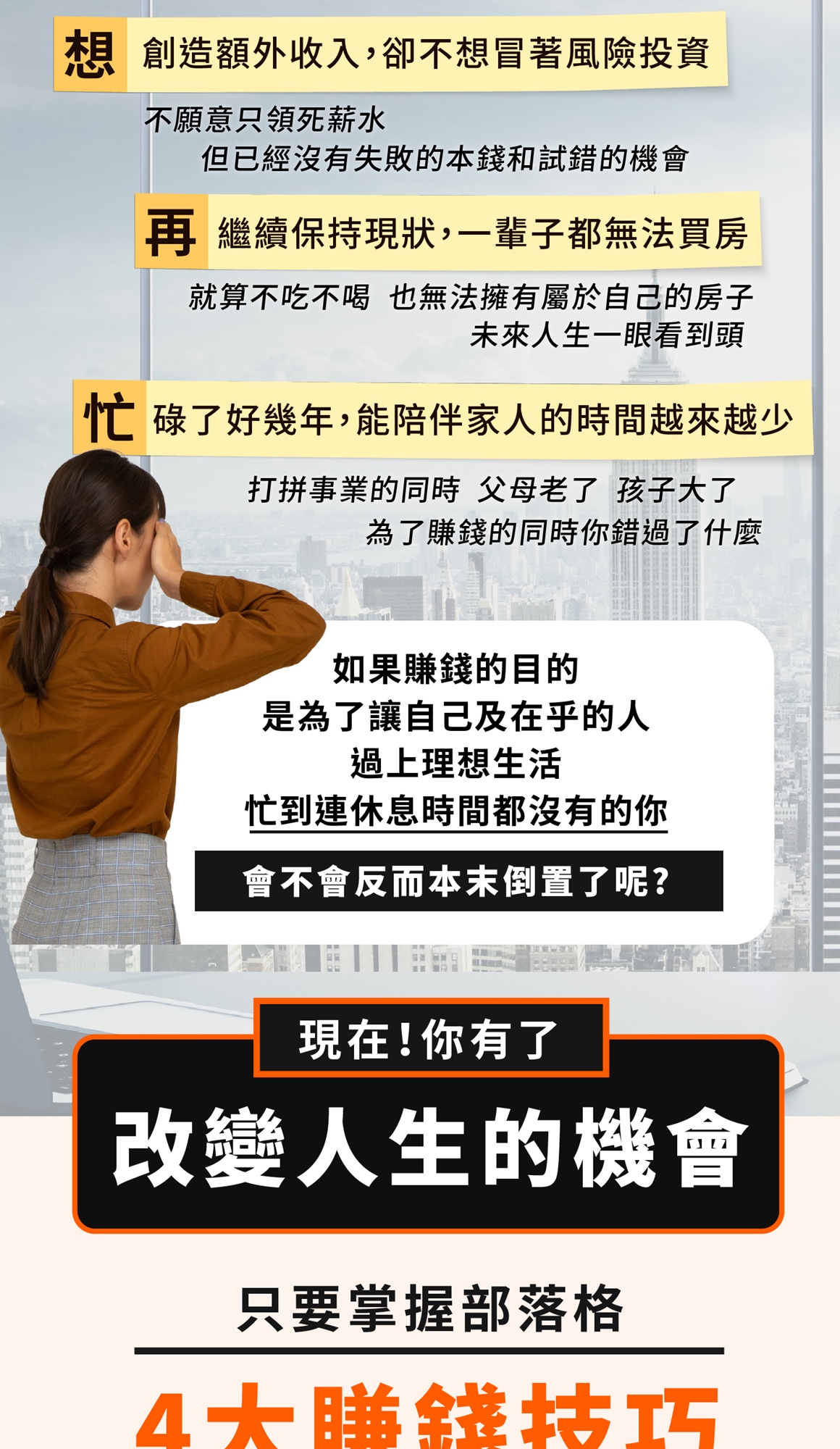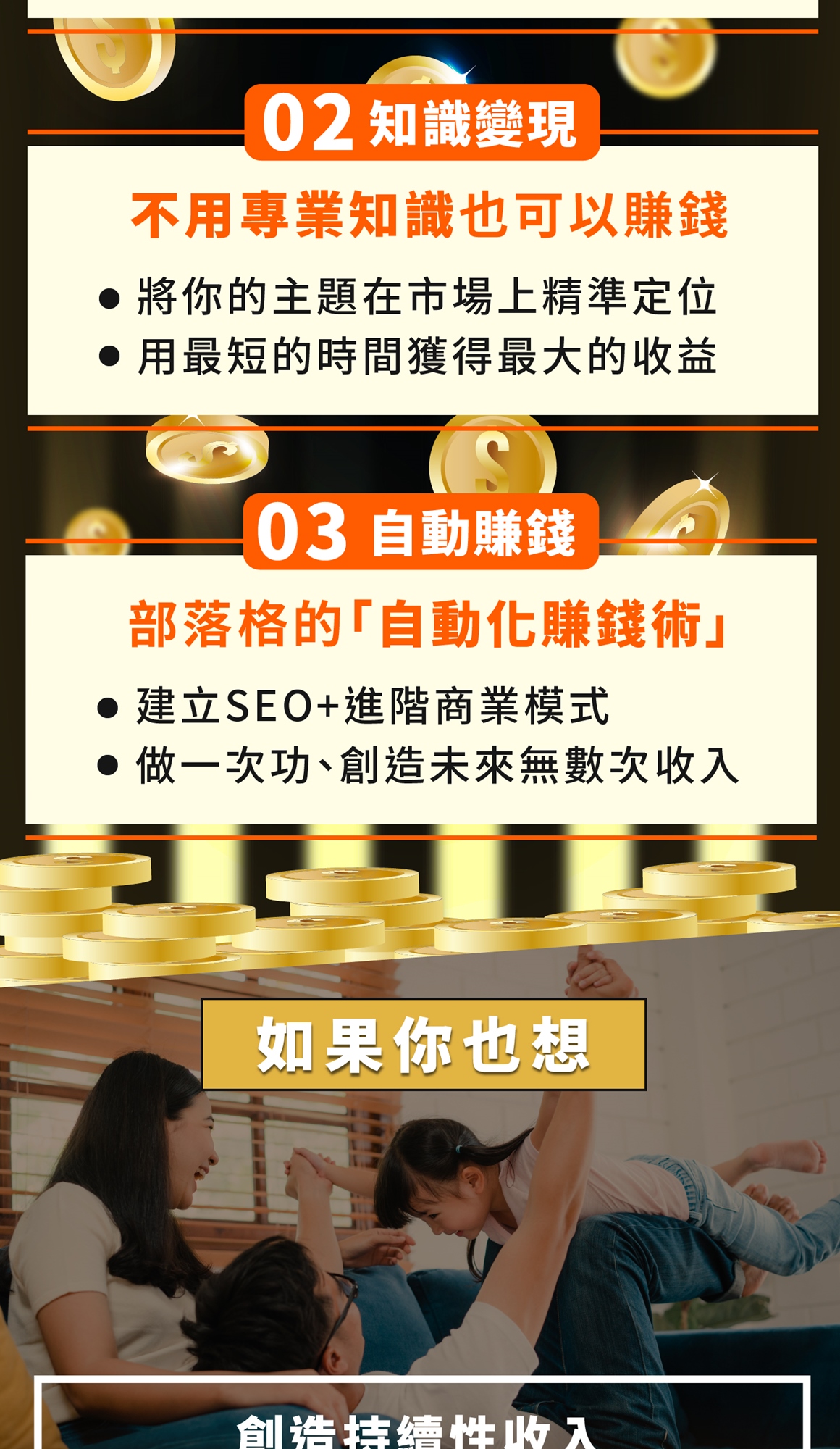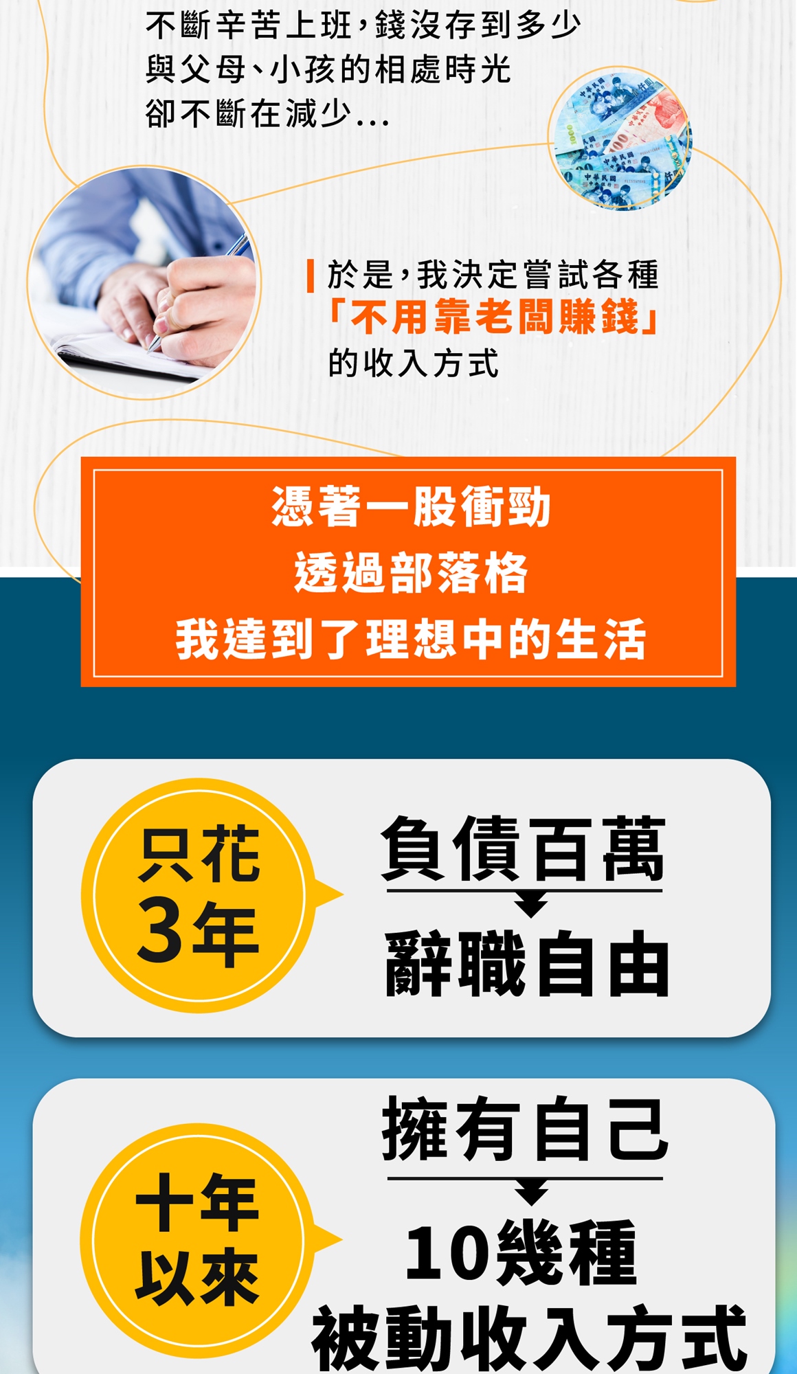 開啟部落格賺錢大門!用一次的時間,創造一輩子收入→【斜槓人生X被動收入X兼職外快】自媒體賺錢模式大揭密▼