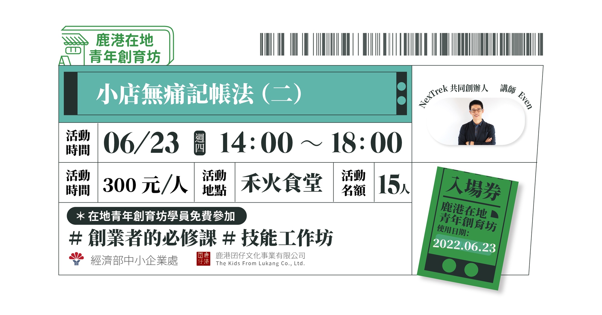 6/23(四)|創業者的必修課-技能工作坊|小店無痛記帳法(二)