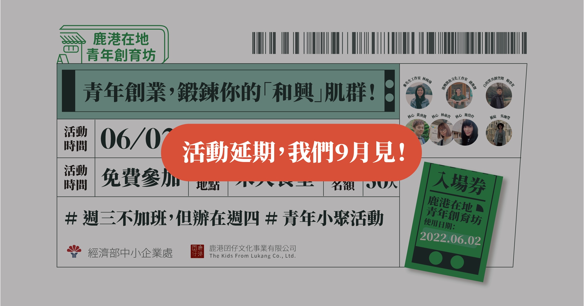 【活動延期】青年小聚活動-週三不加班|《青年創業,鍛鍊你的「和興」肌群!》