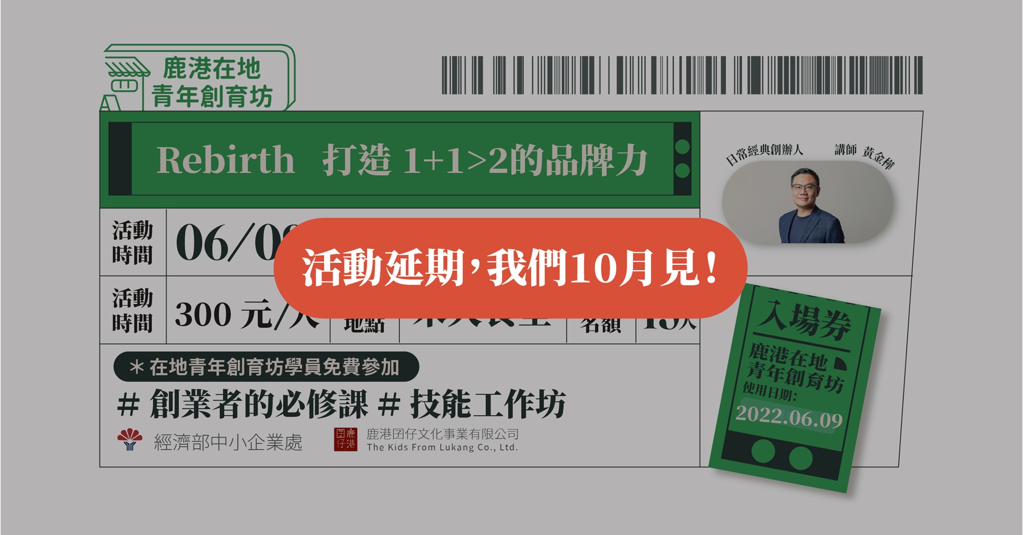 【活動延期】|創業者的必修課-技能工作坊|Rebirth 打造 1+1>2 的品牌力