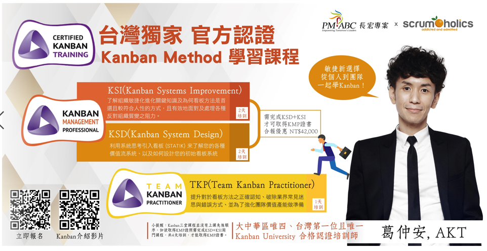 在修練成為KMP 看板管理師的過程,如何設計出適合團隊/組織的看板系統 , 正是KSD 及 KSI 課程必須要學會的,也是官方看板培訓師(AKT)手把手帶領。