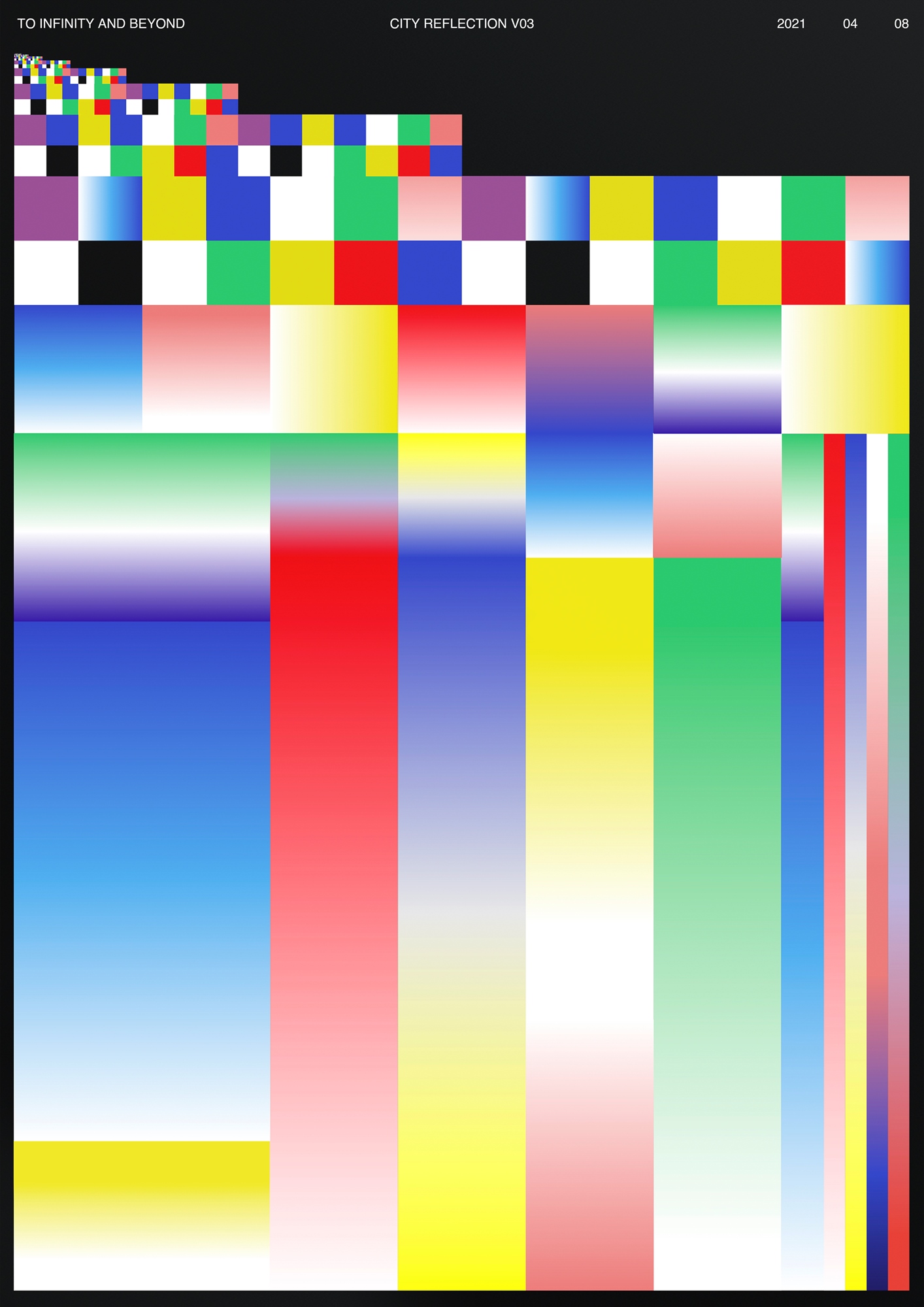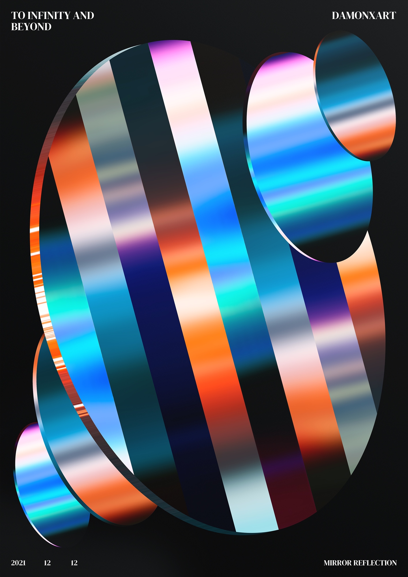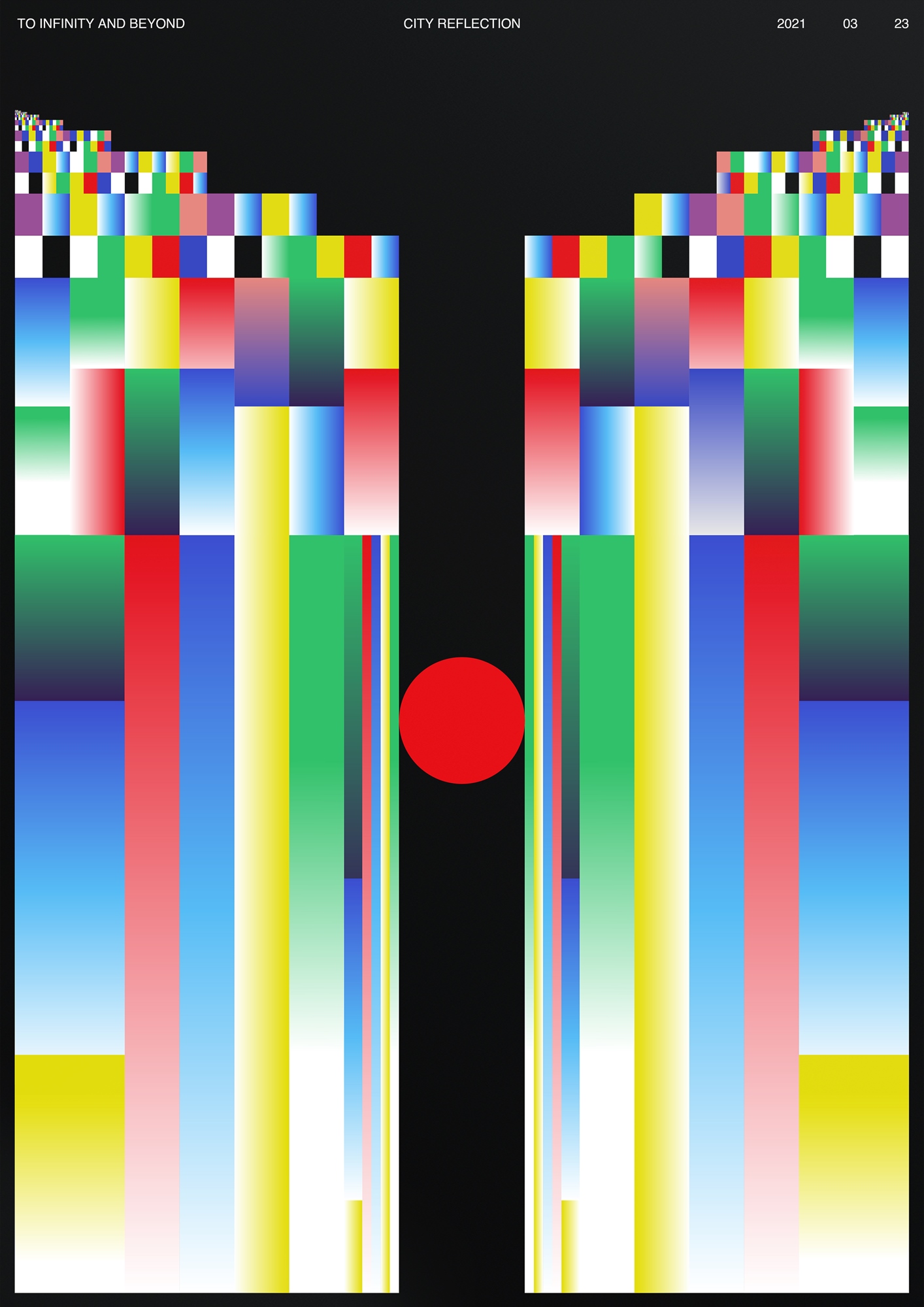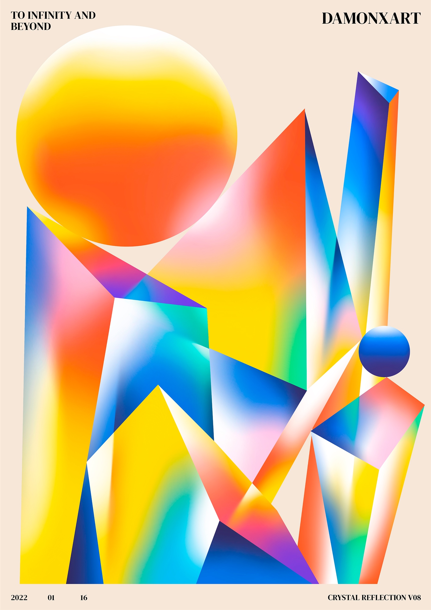 為了在色彩上創造出強烈的視覺效果,他以幾何形狀為主要架構,通過漸層來創造獨特的圖像,同時通過排版和圖形探索獨特的視覺效果.