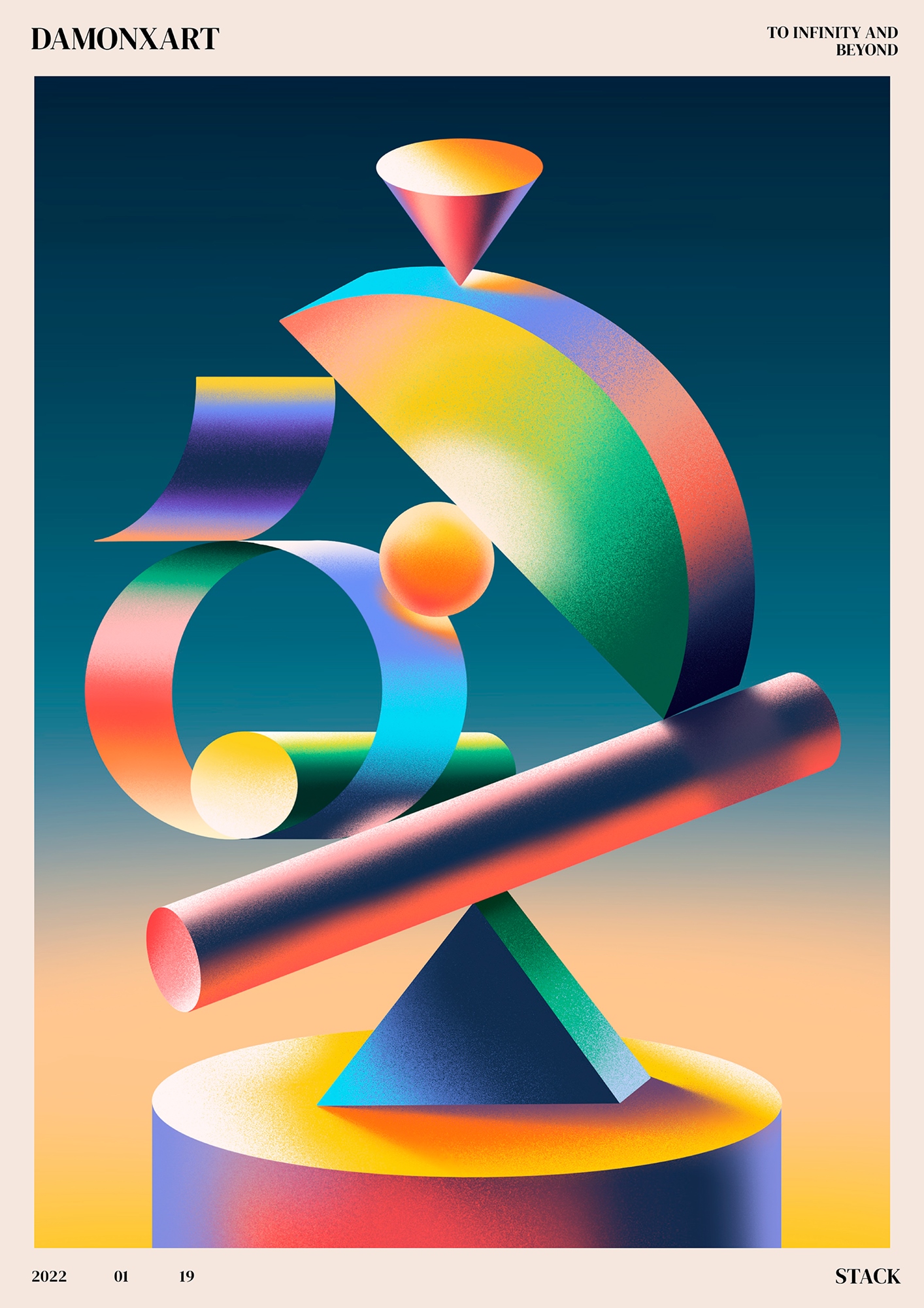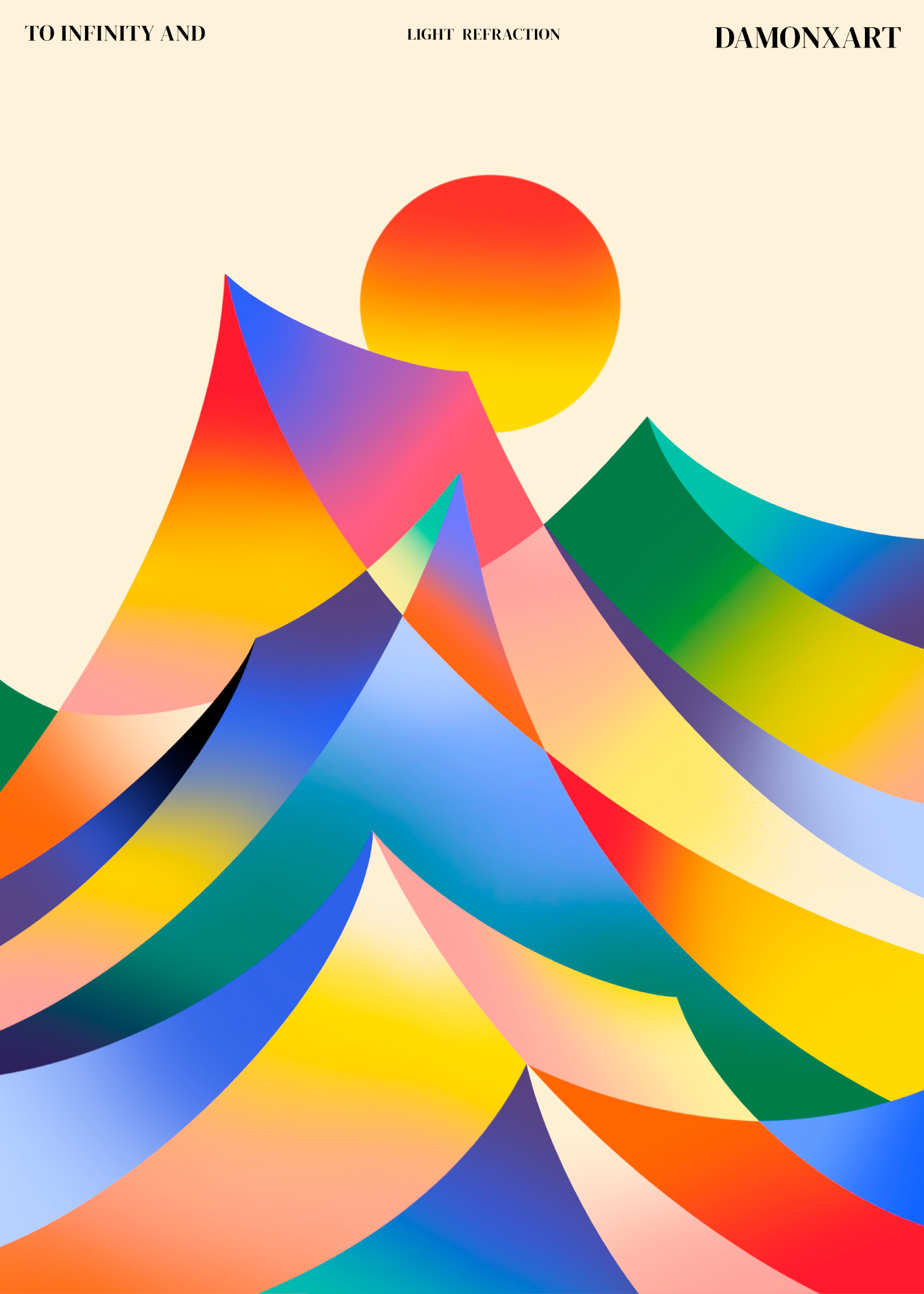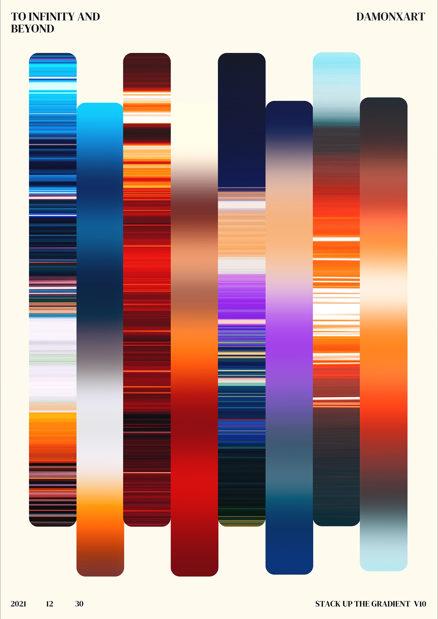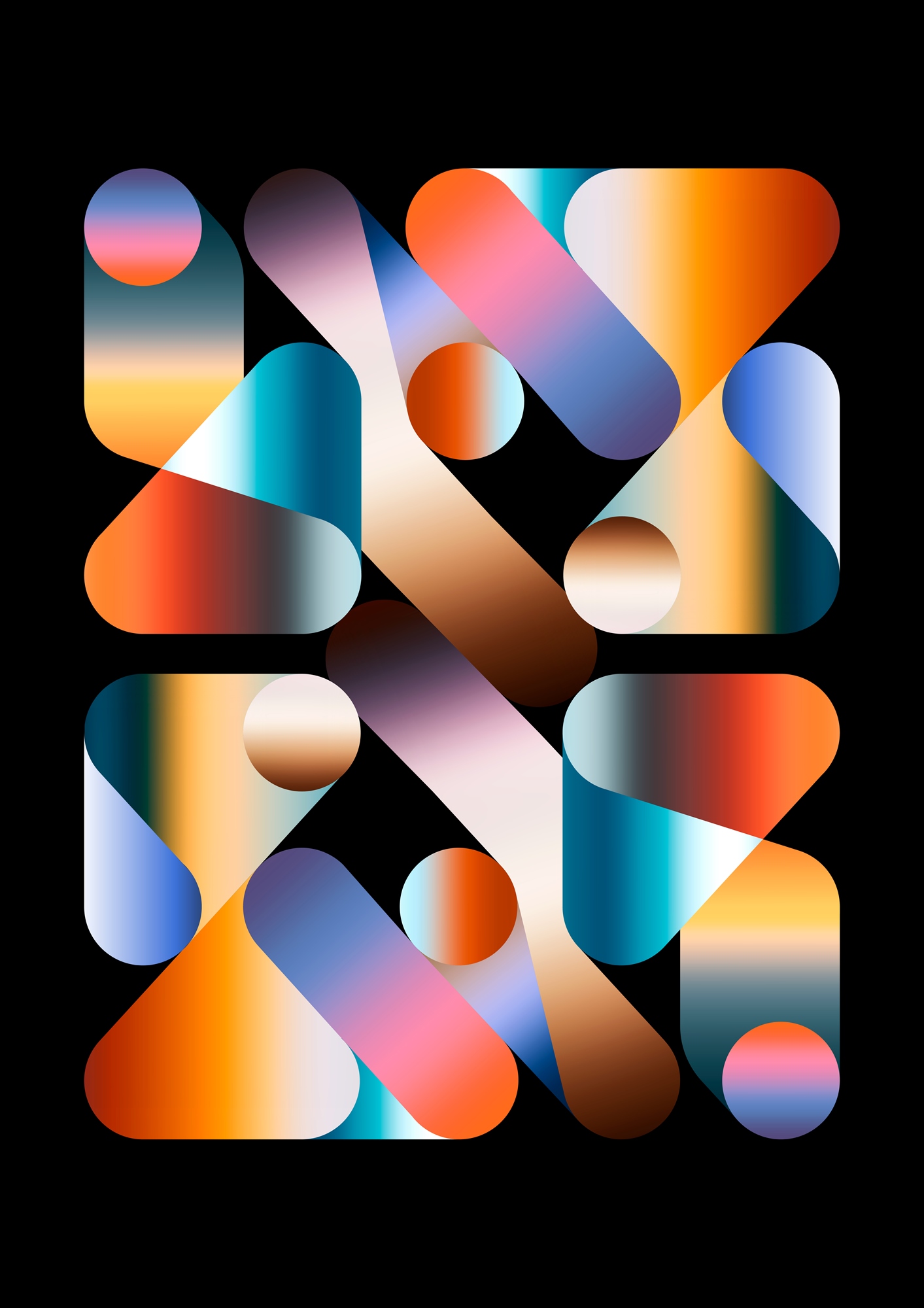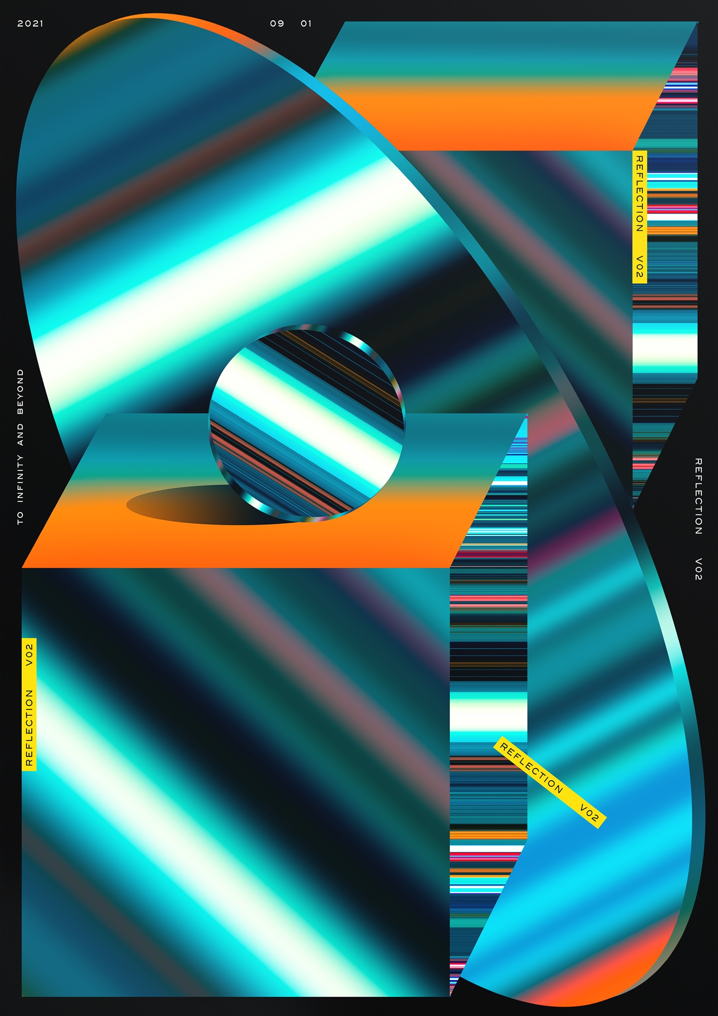 在海報設計中使用漸變和鮮豔的色彩,思考如果世界是由漸層組成的會是什麼樣子。