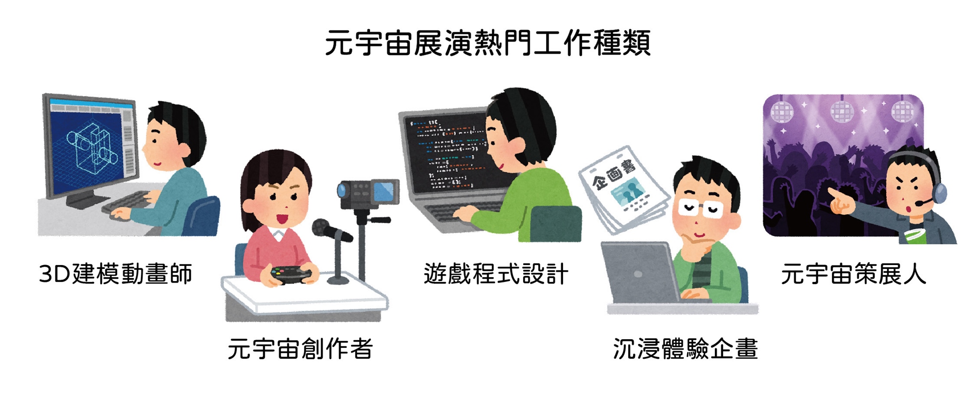 根據Meta總裁祖克柏的看法,元宇宙就是下一世代的行動網際網路。很快的,除了網路行銷人員與資訊服務業必須具備元宇宙的開發與企劃能力外,產品設計人員、市場行銷人員、甚至客服人員也都要學習如何在元宇宙中舉辦活動與參與展覽。在Meta投入100億美金以及超過10,000名員工加入開發臉書元宇宙與VR/AR相關技術後,原本在AR/VR就已經重金投資的各大廠包含微軟、Nvidia、蘋果、甚至谷歌,也不落人後地加速研發的力道。元宇宙的基礎建設將在未來五年將會有突飛猛進的發展,也將會為業界帶來極大的賦能,讓開發VR、AR、或是相關沉浸體驗的門檻大幅下降。