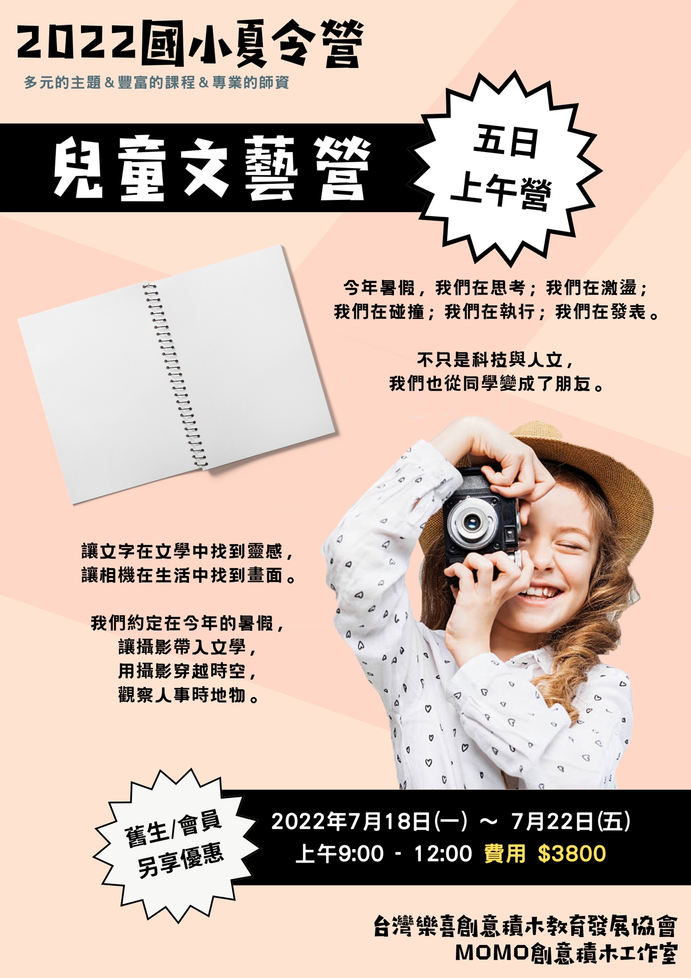 | 兒童文藝營 | 2022/7/18(一) - 2022/7/22(五) | $3800 | |