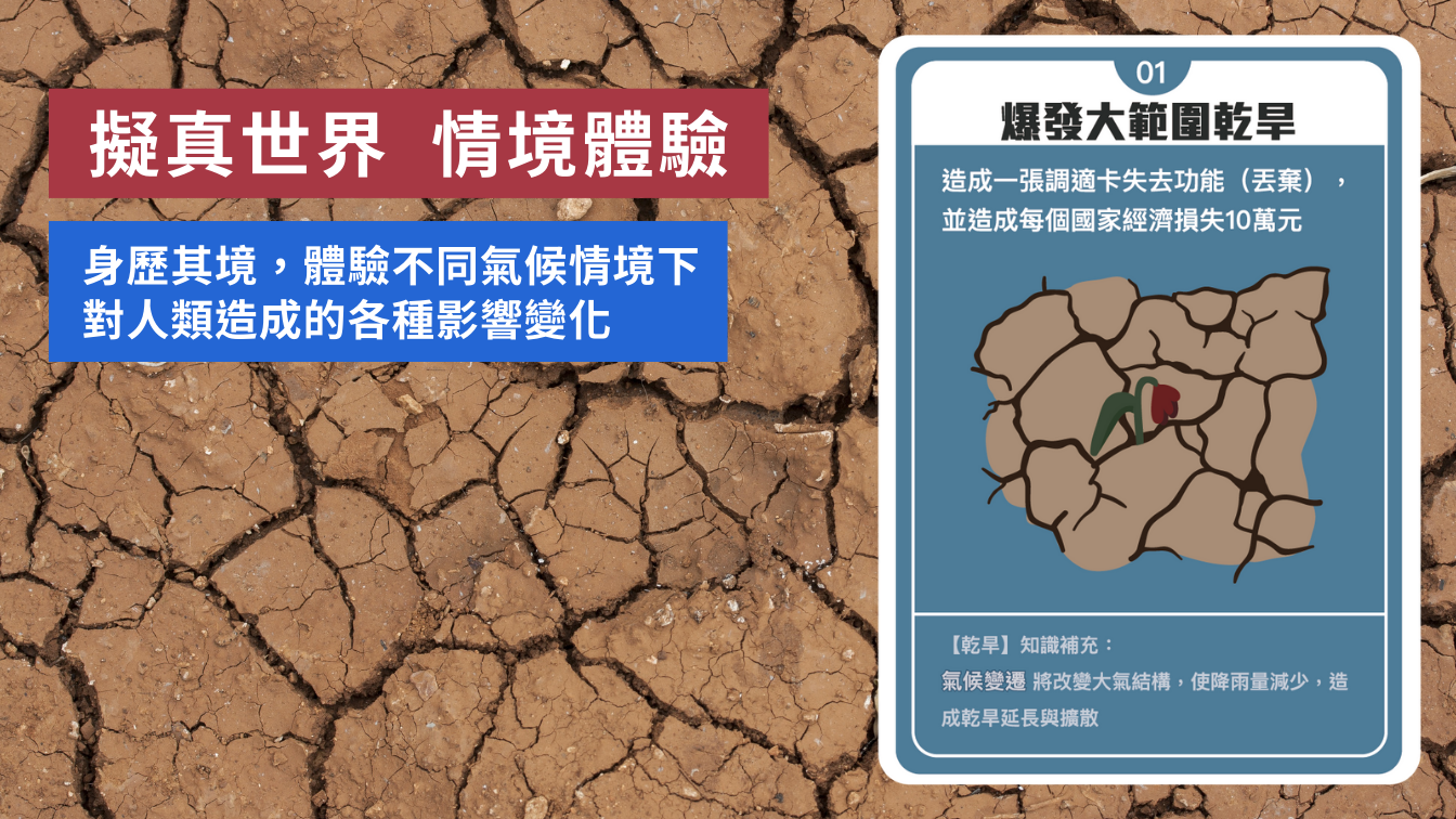 玩家的每一步,都牽動著整體氣候發展,面對難以預測的氣候災害,我們該如何兼顧環境與經濟發展,獲得遊戲勝利呢? 等著你來挑戰唷!