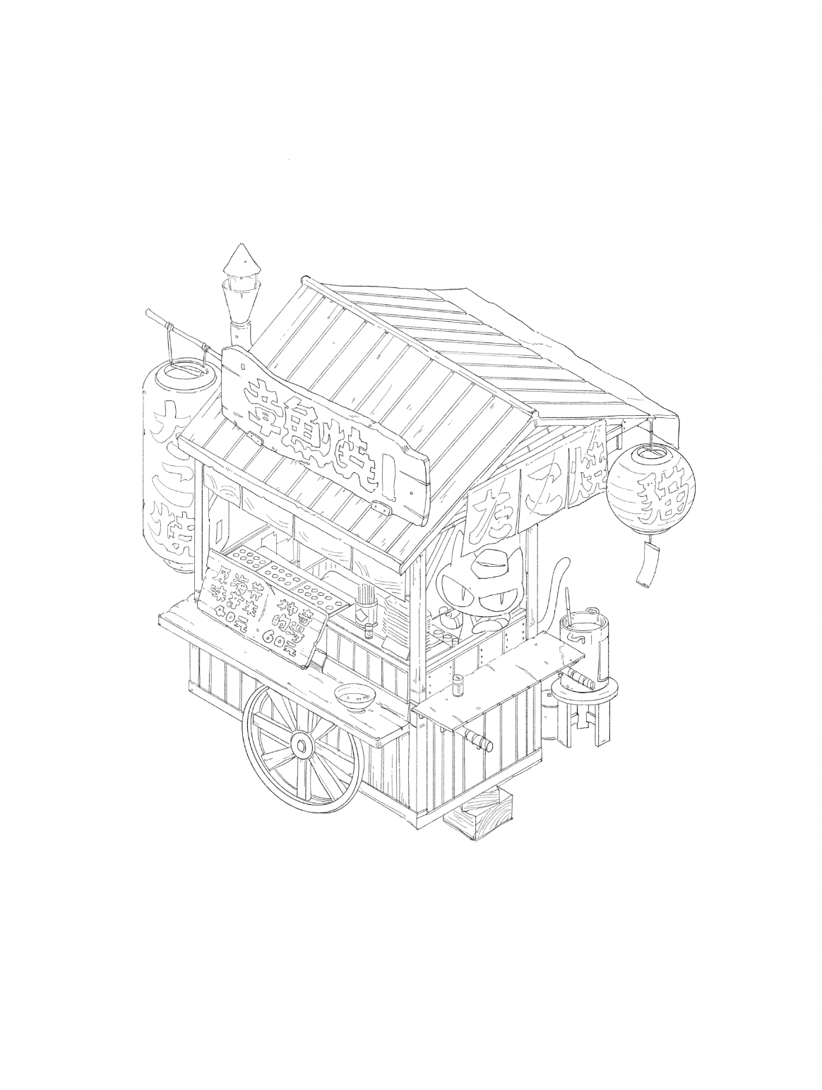 老師會提供線稿給各位,線稿的內容為小型版本的「貓老闆的書店」