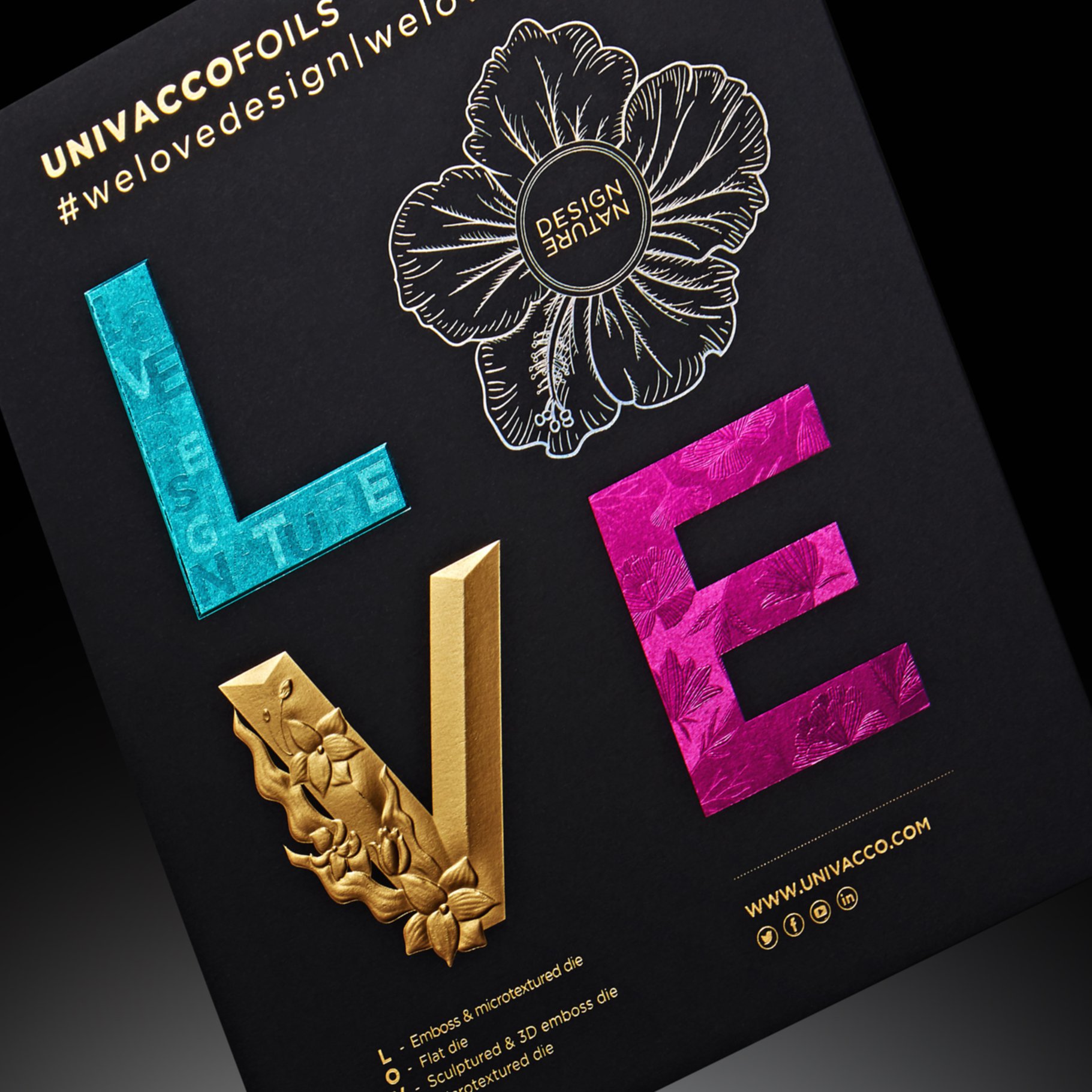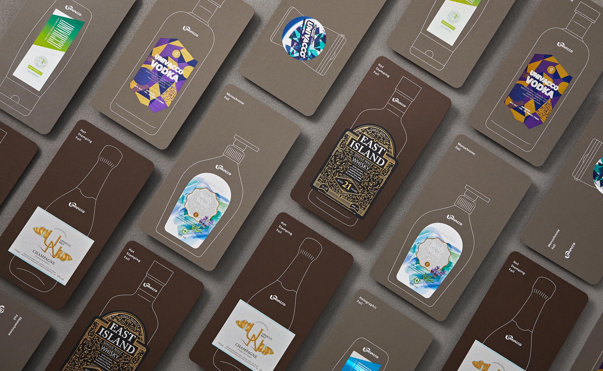 UNIVACCO的品牌名稱是岱稜引以為傲的三大核心技術體現─UNIque chemical formula 獨特的化學配方‧VACuum metalizing 高規格的真空蒸鍍技術‧COating technology 精密的塗佈技術;Logo的彩虹象徵了活力與創造,如同彩虹的繽紛色彩,期許UNIVACCO所研發與製造的燙金箔與光電產品,能為人們增添色彩。