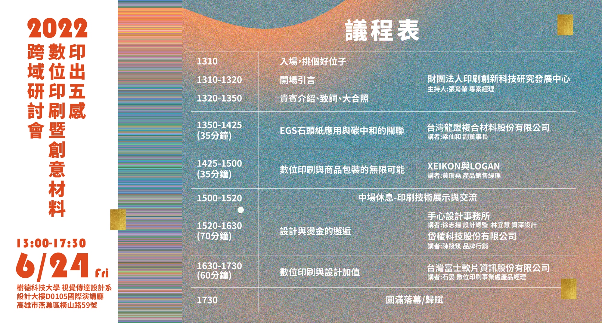 透過本次印刷講座讓設計師了解數位印刷及創新材料的應用,「數位創新啟動經濟發展新模式」策略之「推動產業創新優化轉型」、「打造數位國家智慧島嶼」,以開啟臺灣印刷產業的嶄新格局,掌握關鍵優勢加速創新與數位轉型。