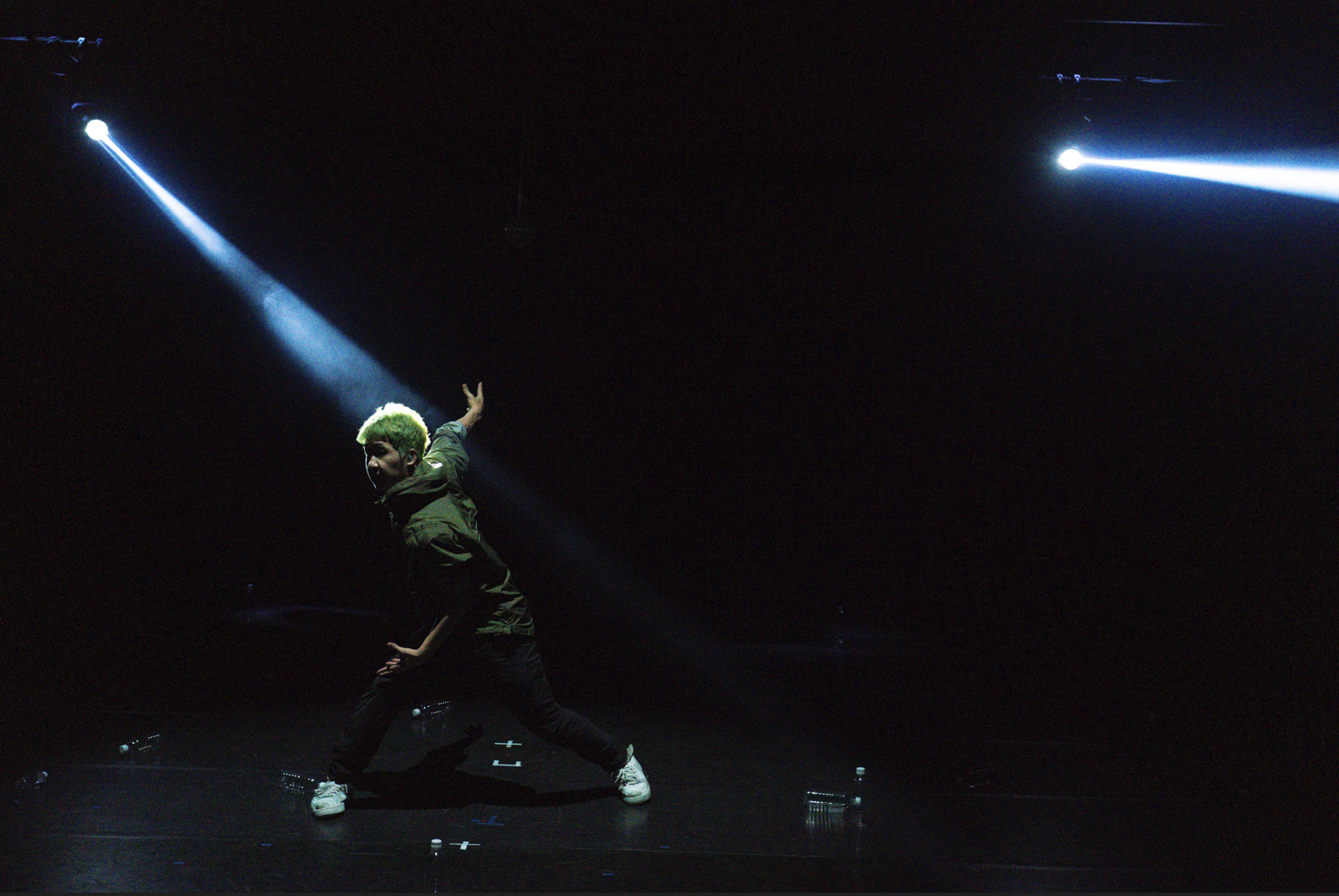 《無人知曉》以街舞舞者的身體動能為核心,透過全身動態捕捉設備器串連起「聲響科技」與「燈光系統」,使聲光結構與舞者緊密交織,塑造出「移動」的具體感受與表演性。
