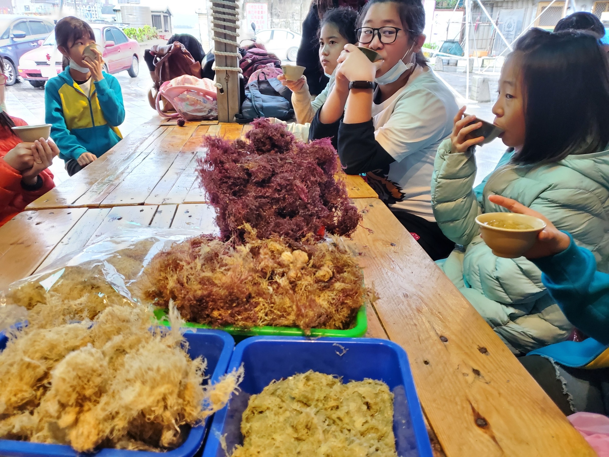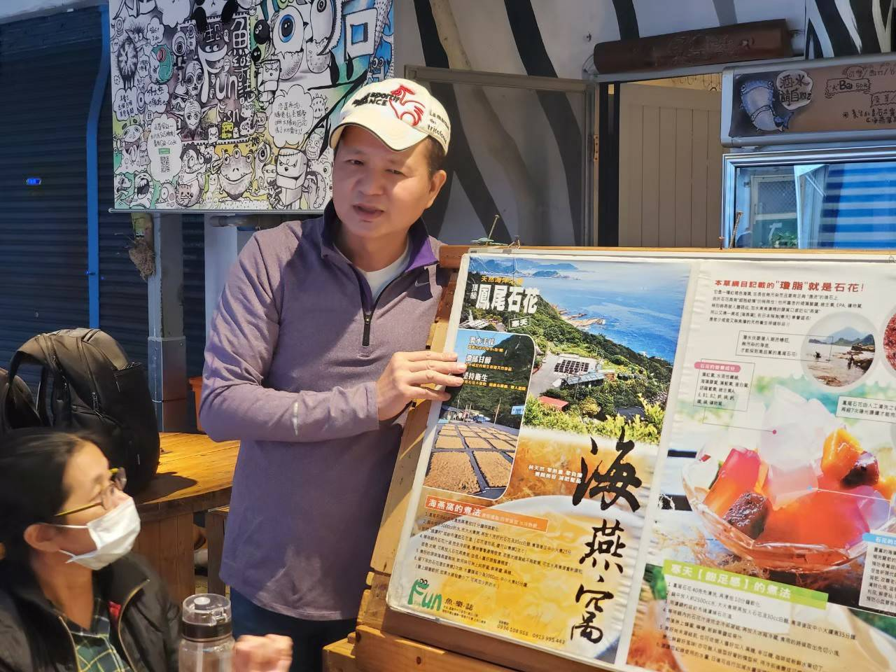 石花是台灣東北角獨特的海藻,具有豐富的天然膠質,而鳳尾石花菜擁有和平島紅寶石的美譽。和平島的海藻生長旺盛,海女們踏著草鞋在岸邊採摘海草,再將石花菜反覆的漂洗曝曬,經過8天的日曬才能產出。乾燥的石花菜帶著海水的腥香,除了食用之外也被在地藝術家作為創作的靈感,將石花菜入畫,讓地方特色以藝術方式繼續推廣地方之美。
