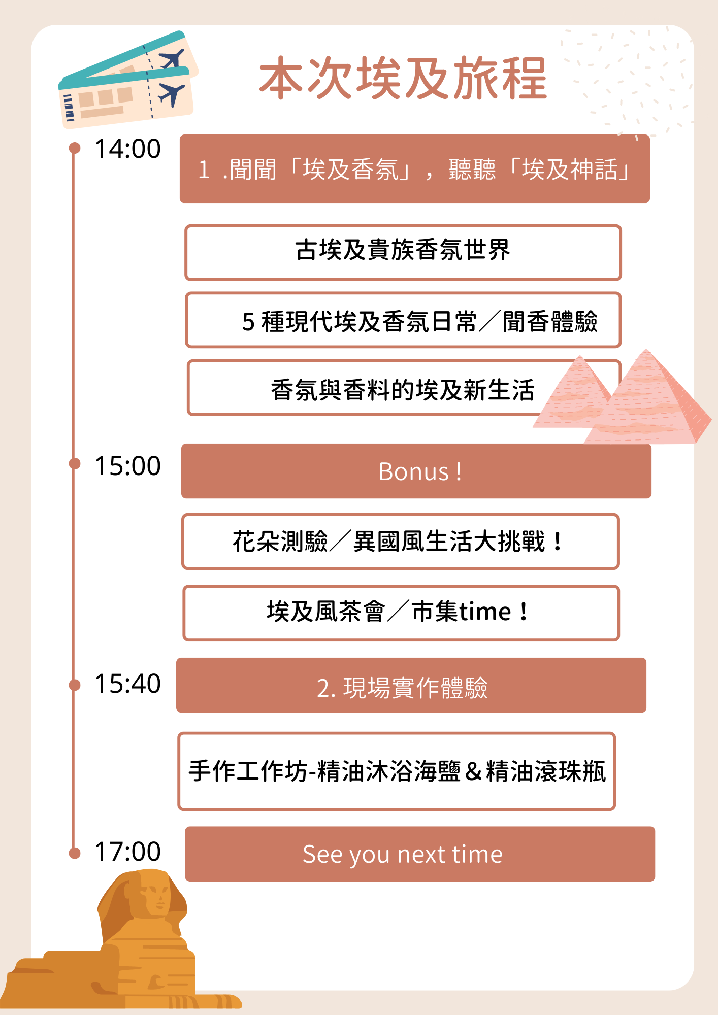 3. 平時工作繁忙、卻又期待環遊世界 - 讓我們先用香氣認識神秘國度,學習埃及人的用香知識,一起體驗香氛調節壓力與心情的力量!