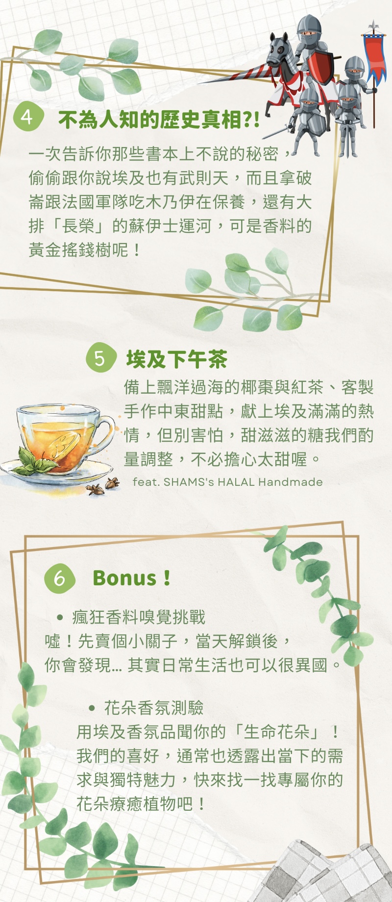 品嚐經典埃及下午茶點、一起用五感走一趟埃及之旅