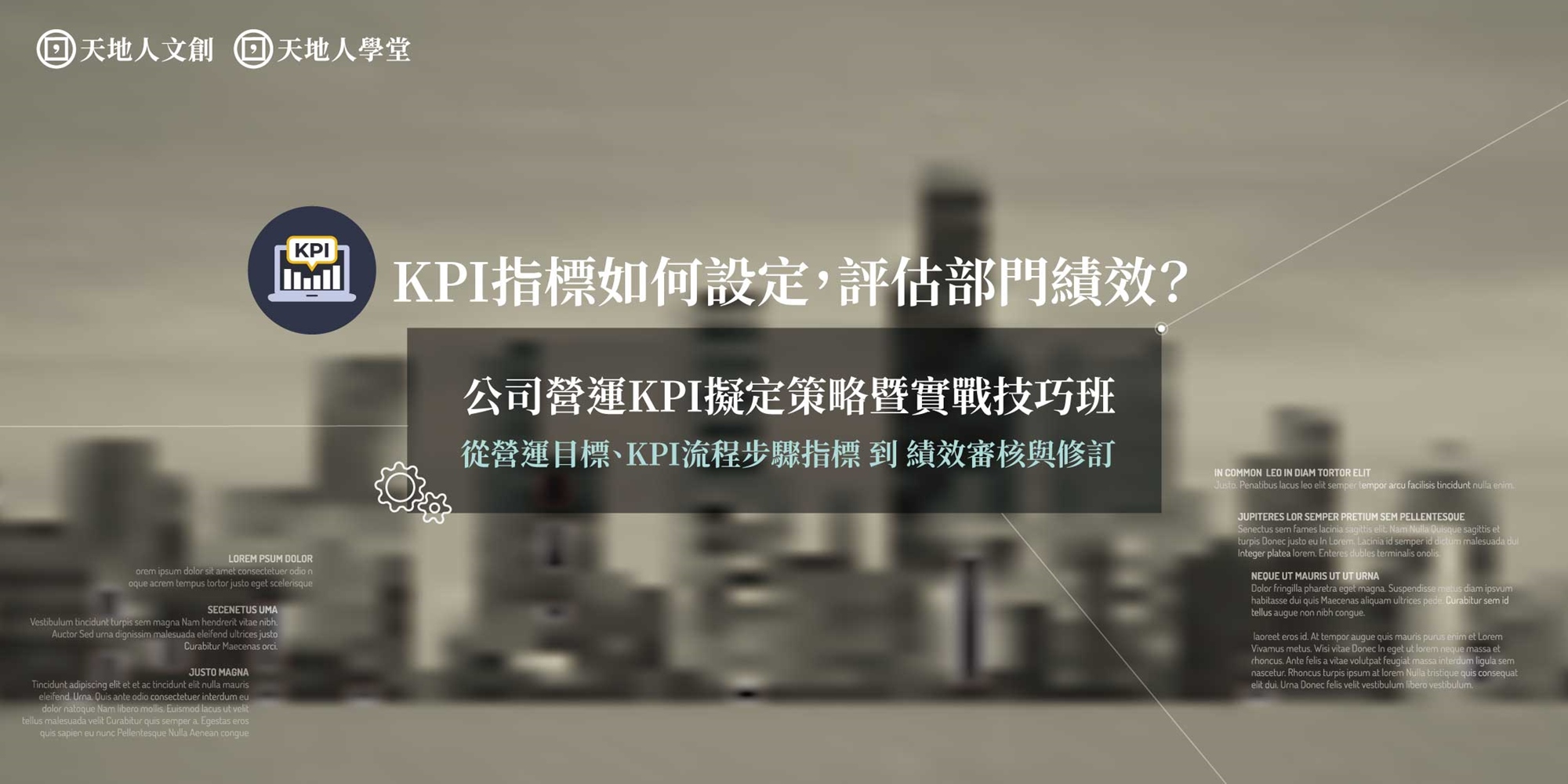 合理的績效目標管理是能夠激發員工最大限度,從而實踐企業經營的發展戰略。有鑑於此,天地人文創旗下天地人學堂特地規劃出「KPI指標如何設定,評估部門績效?公司營運KPI擬定策略暨實戰技巧班|從營運目標、KPI流程步驟指標 到 績效審核與修訂」,邀請到現任味丹企業顧問親授課程,以多年扎實的實務經驗由淺入深的帶領學員瞭解企業營運的績效指標,全面剖析KPI指標與企業績效評估的十二核心技能:(1)關鍵績效指標(KPI)的源起;(2)KPI 的演進流程與基本概要;(3)何謂「績效」?從企業角度探討執行目標;(4)公司目標與KPI之間的關聯;(5)如何選定各單位從KPI到“Key”之項目;(6)設定KPI的執行步驟與流程;(7)效率指標的計算法則;(8)如何設定各部門KPI的「合理目標值」;(9)KPI的評分標準;(10)KPI獎金制定原則—達成率與提撥率;(11)修訂KPI指標與持續改善;(12)業界實際案例分享與演練,透過這門課程,協助你瞭解企業績效執行的實戰技巧與Know-how。