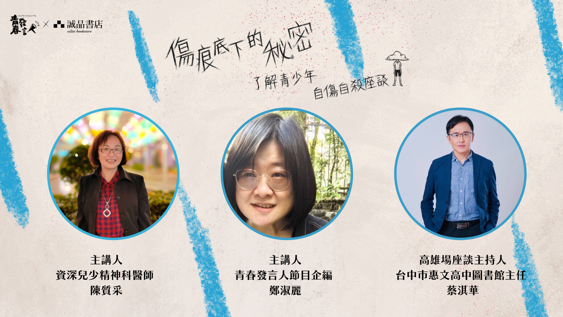 為什麼青少年會以自傷自殺面對難題?當身旁的好友、親人選擇一再自我傷害時,我該怎麼做?公視節目《青春發言人》於6月底製作「青少年自傷自殺」專題,特別舉辦座談,邀請兒少精神科:陳質采醫師、台中惠文高中蔡淇華老師、製作專題的節目企編鄭淑麗一起對談,用多元視角了解青少年自傷自殺問題。