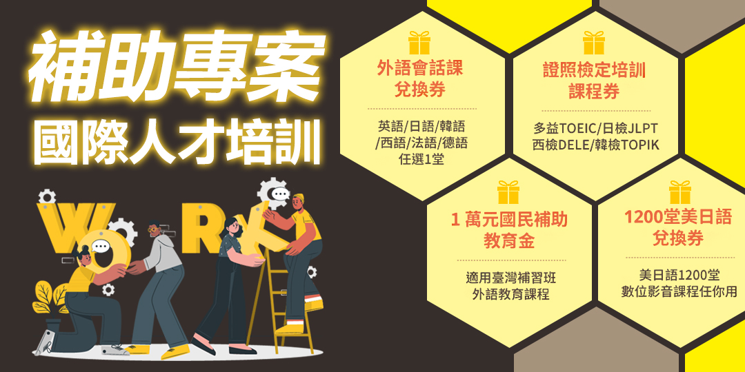 外語會話課+外語檢定課+1200堂數位課+萬元課程補助金