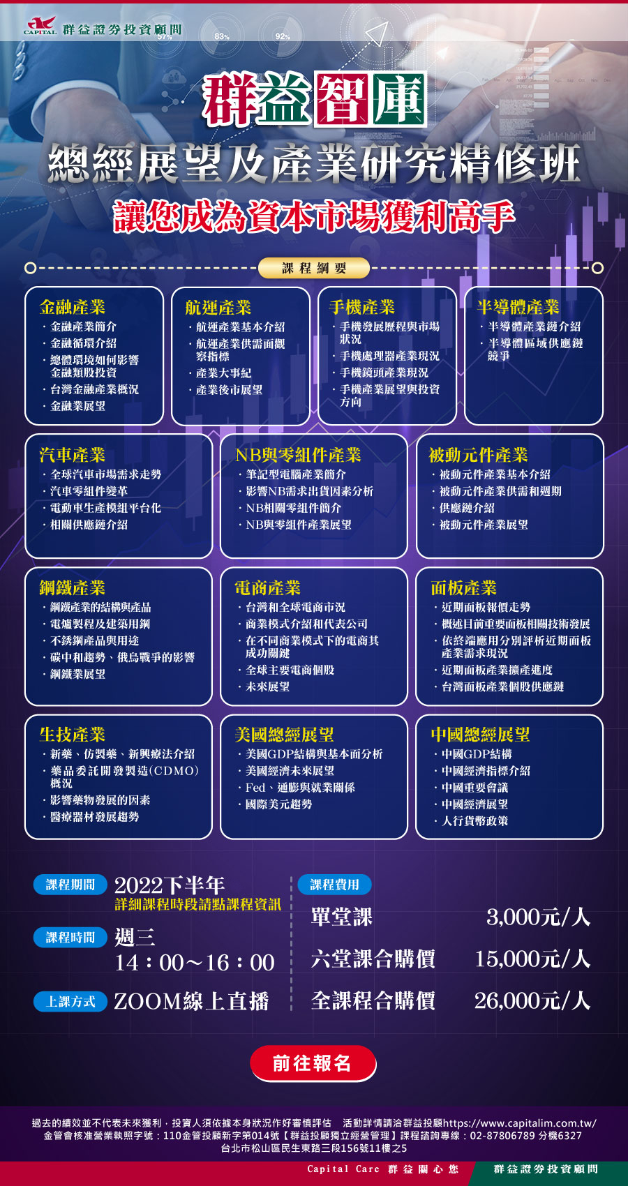 群益投顧2022下半年總經展望&產業研究精修課程(線上收費課程)