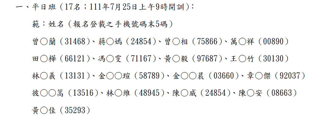 (依報名資格錄取優先順位,若同樣順位時再依報名平台資料填寫之日期及時間