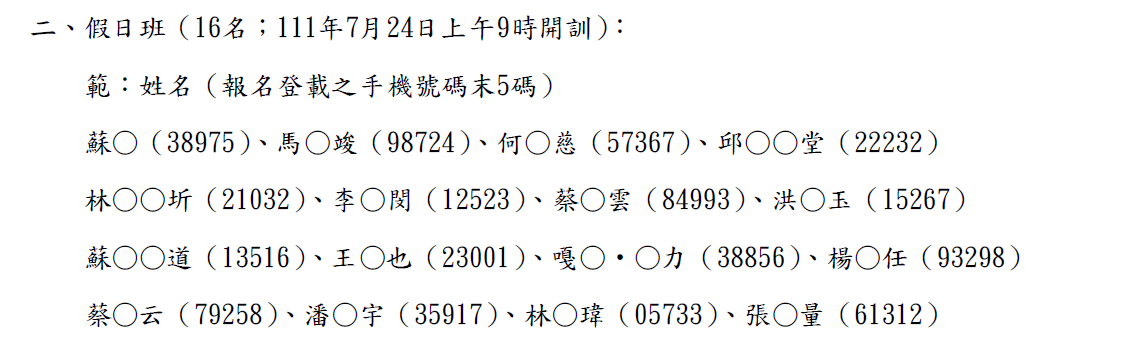 假日班:111年7月24日(日)至111年9月25日(日)(每周假日上課)
