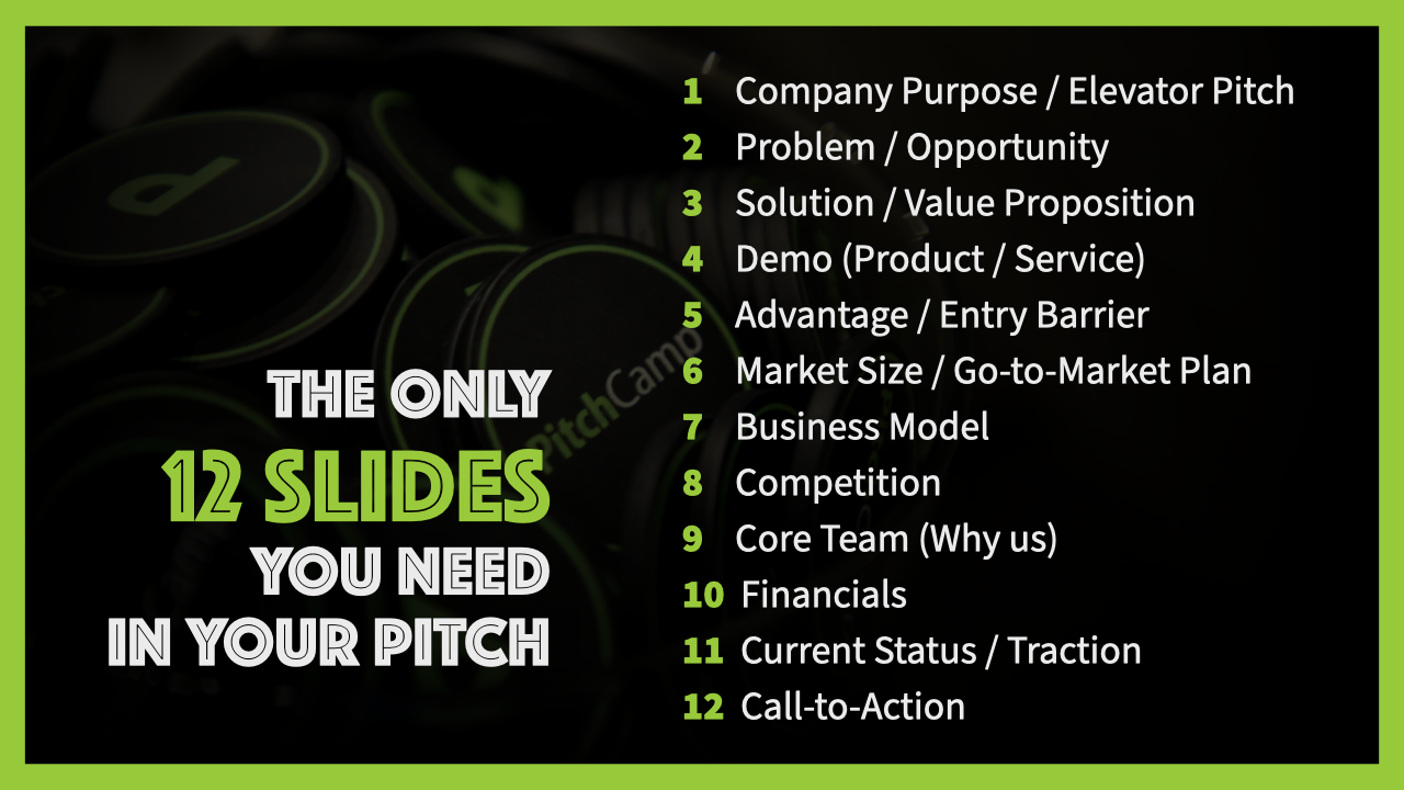 PitchCamp 是台灣首個以創業簡報為主題的實戰訓練營。為創業公司量身打造從結構企劃、視覺呈現、訊息傳遞到實戰演練的全方位培訓,幫助創業者更好地傳遞理念。