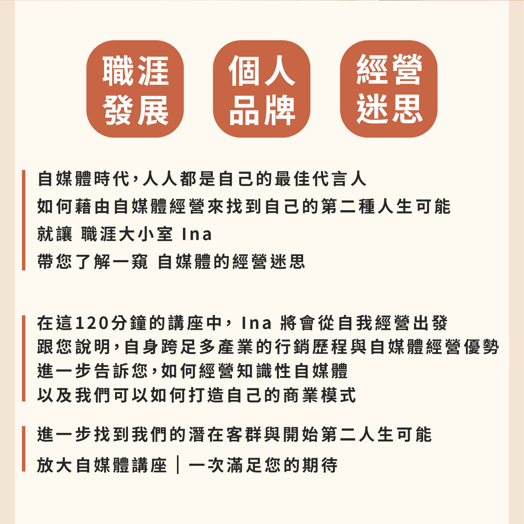 放大自媒體講座【知識型自媒體商業模式歷程】& 職涯大小室 Ina