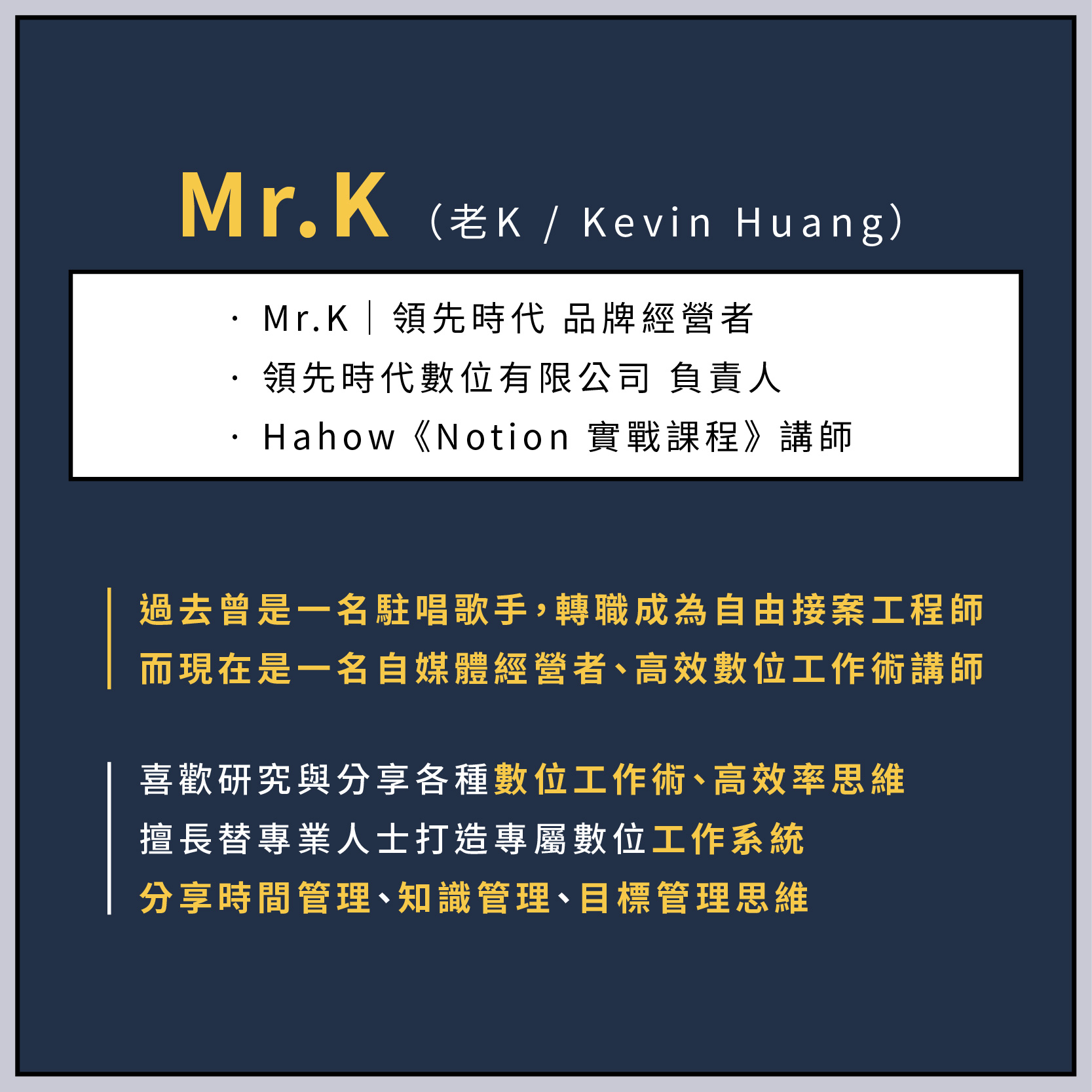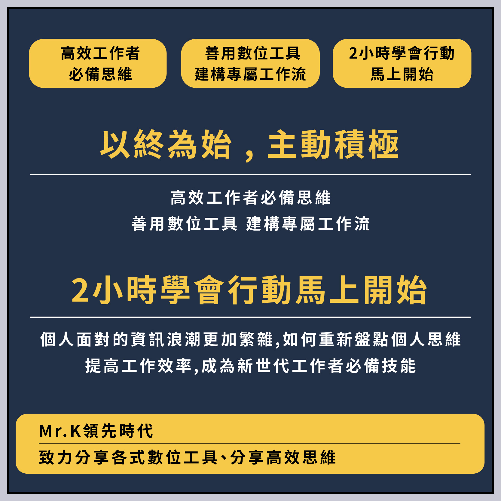放大知識學院2022自媒體講座 【高效工作者必備思維與數位工具力】 X Mr.K 領先時代